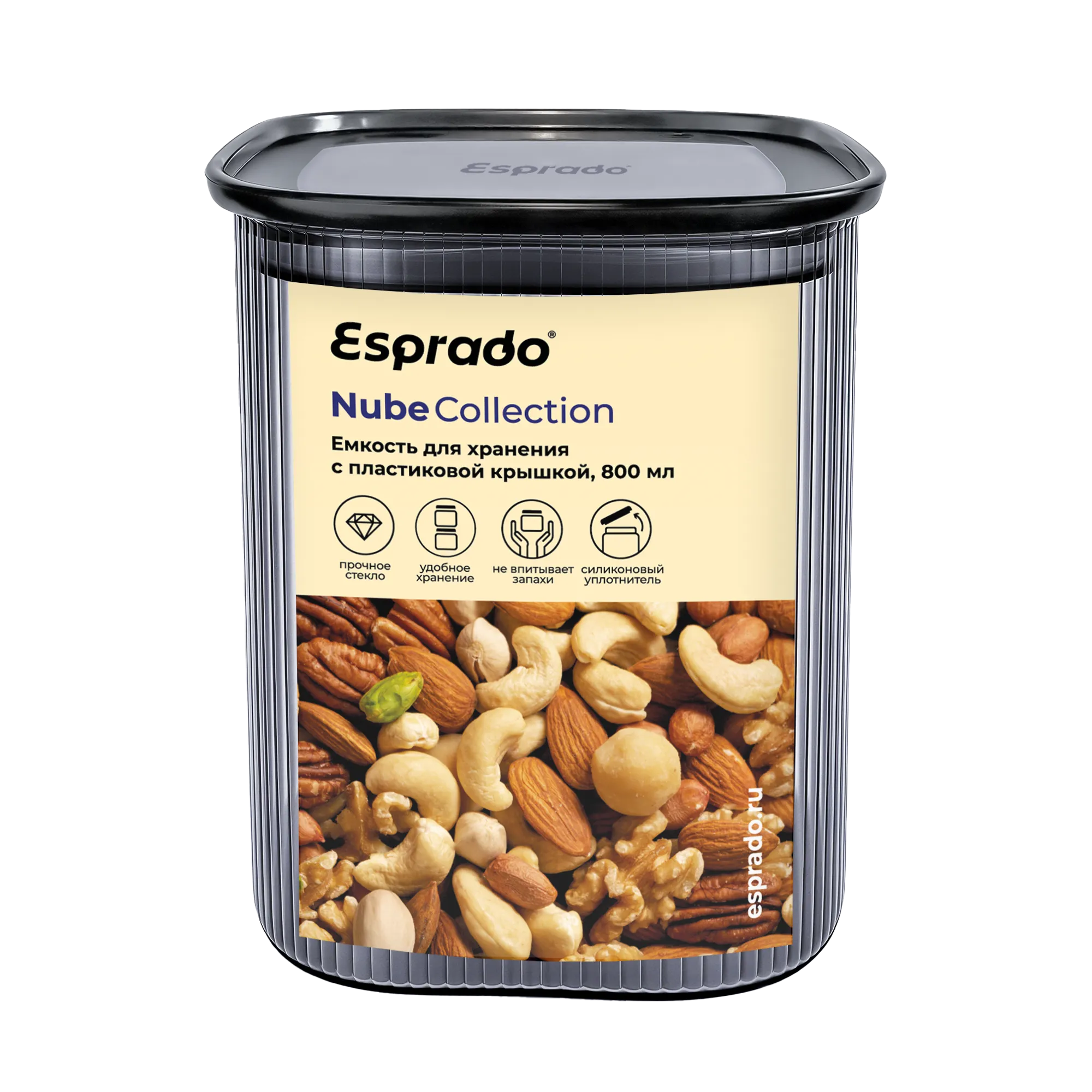 Легкое и прочное боросиликатное стекло серого цвета, емкость не впитывает запахи. Герметичная крышка с силиконовым уплотнителем сохранит цвет и аромат содержимого емкости.