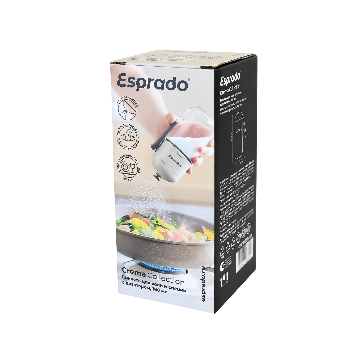 Дозируйте специи легким нажатием на ручку. Подходит для молотых соли, перца и других специй. Широкое горлышко позволяет удобно наполнять и мыть изделие. Спокойный цвет слоновой кости подойдет для любой кухни. Можно мыть в посудомоечной машине.