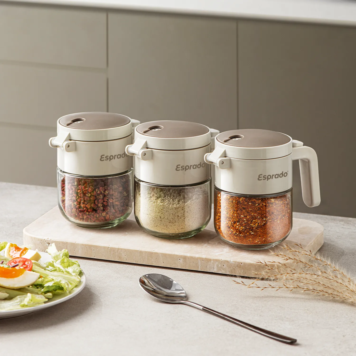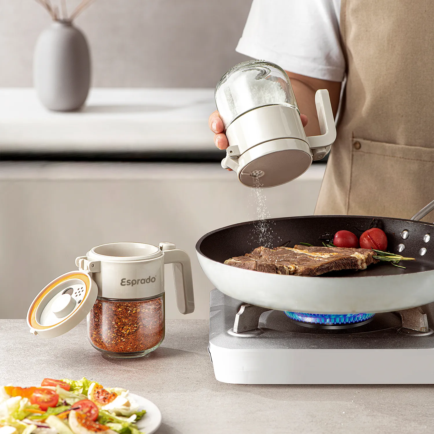 3 вида отверстий для насыпания специй мелкой, средней и крупной фракции. В комплекте мерная ложка для аккуратного добавления специй. Широкое горлышко позволяет удобно наполнять и мыть емкость. Эргономичная ручка не скользит в руках.