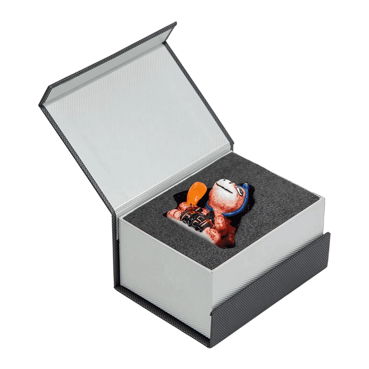 Фарфоровая игрушка расписана вручную, мелкие детали выделены золотом. Дизайн и неповторимый образ разработаны российскими художниками. Изделие упаковано в стильную подарочную коробку с магнитным замком. На ярлычке – забавное стихотворение о зверьке.