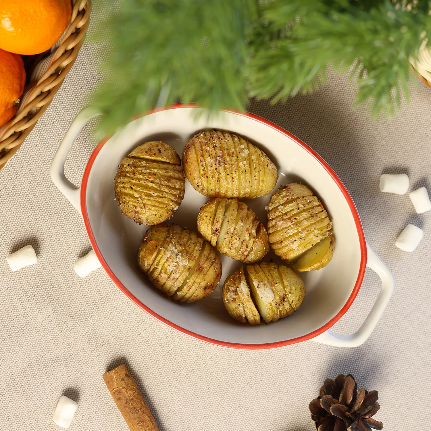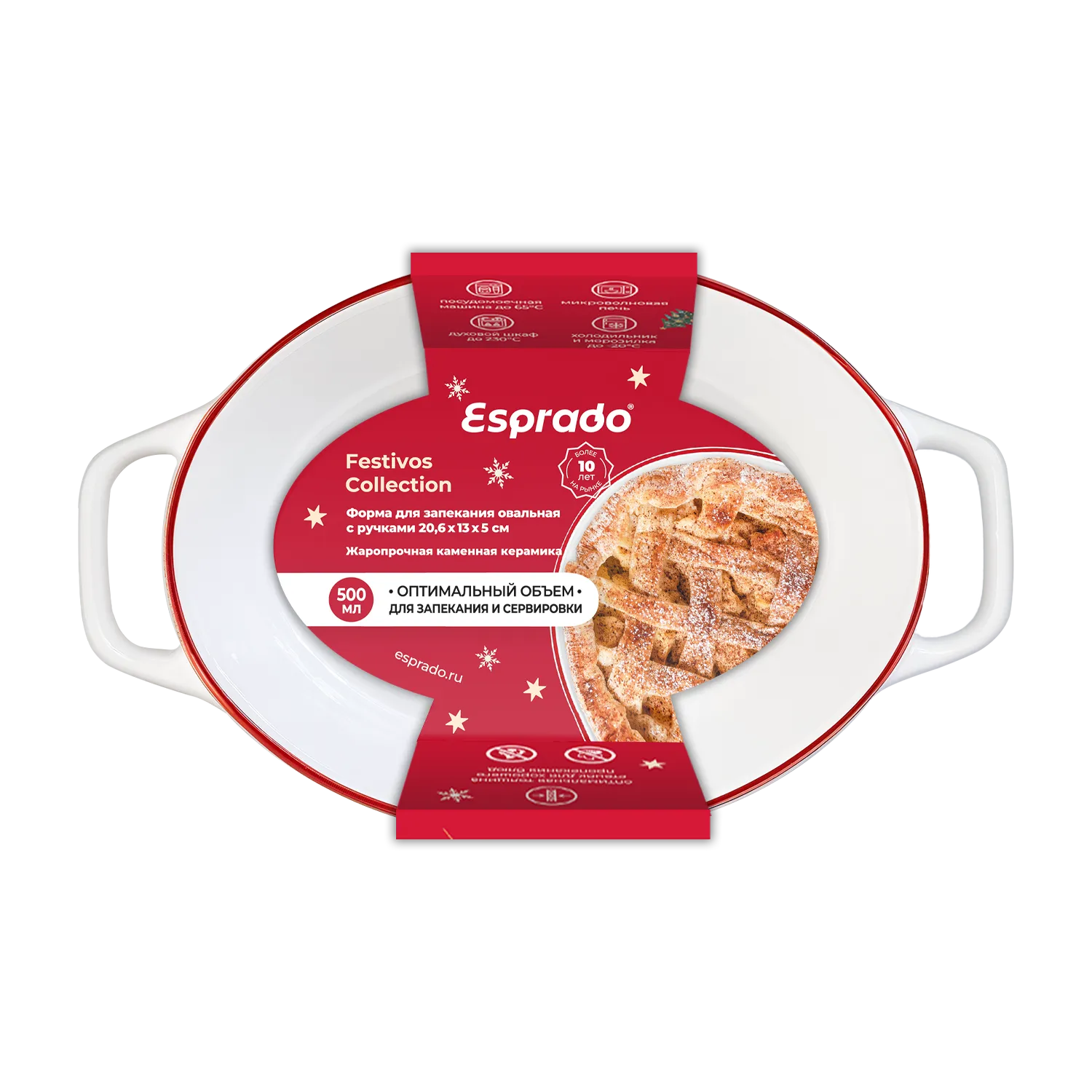 Выдерживает температуру от -20°C до +250°C. Удобная форма с ручками подойдет для различных блюд, сытных или сладких. Идеально впишется в праздничную сервировку благодаря новогоднему орнаменту.