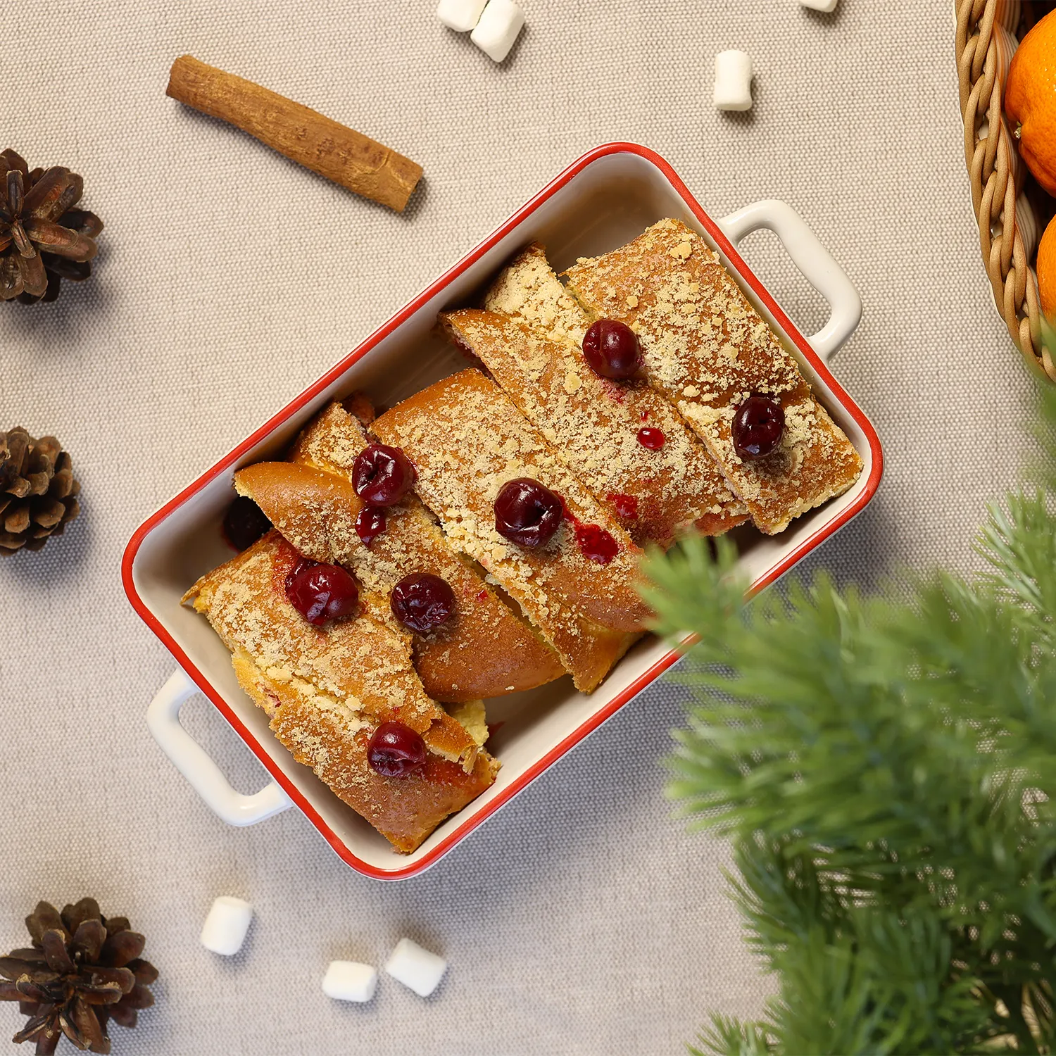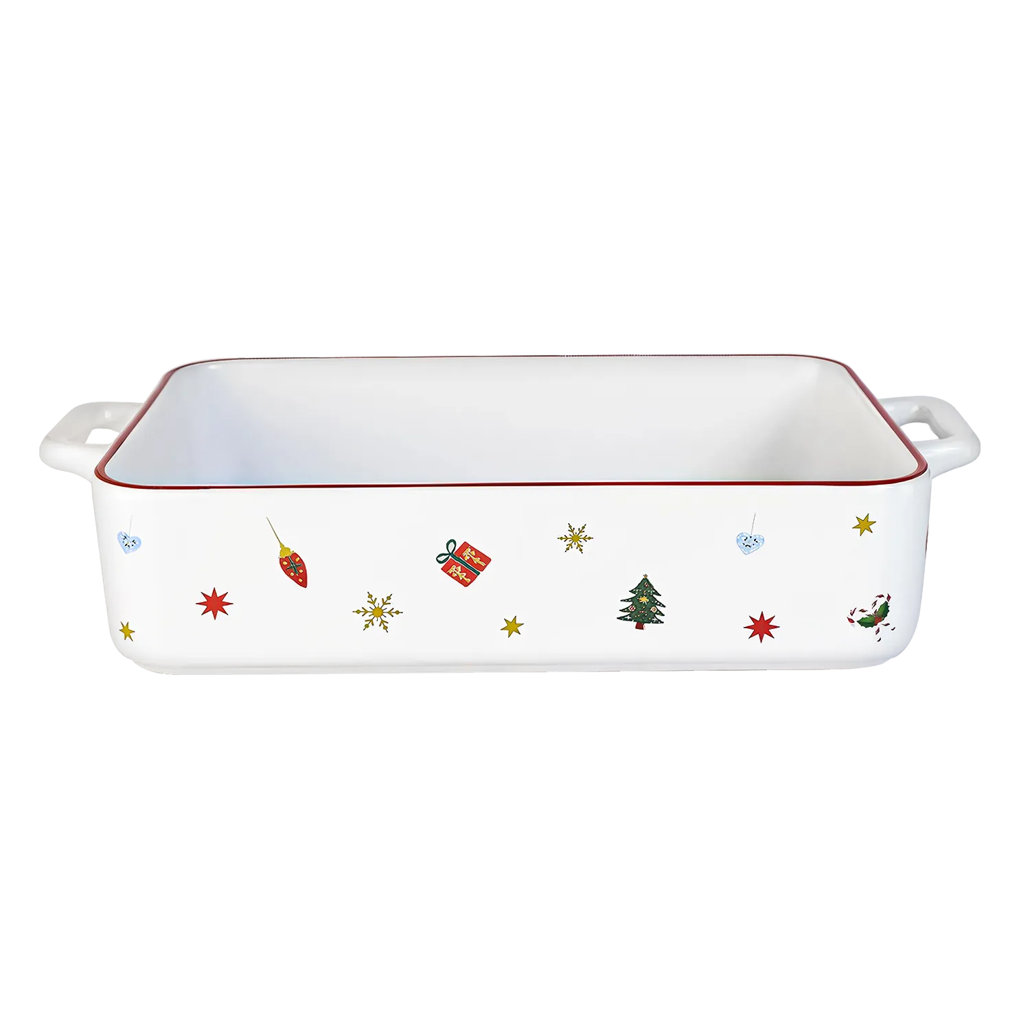 Выдерживает температуру от -20°C до +250°C. Удобная форма с ручками подойдет для различных блюд, сытных или сладких. Идеально впишется в праздничную сервировку благодаря новогоднему орнаменту.