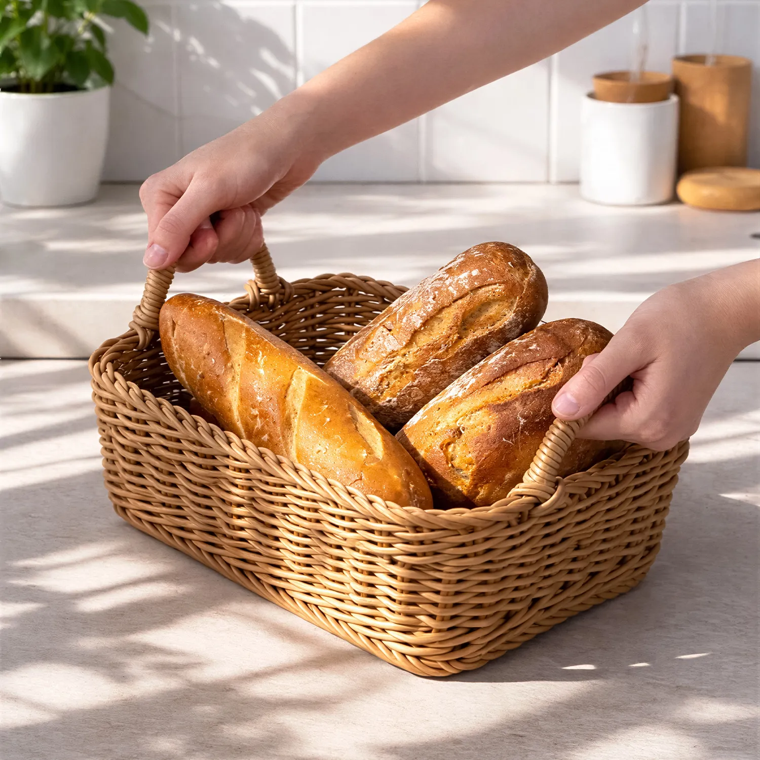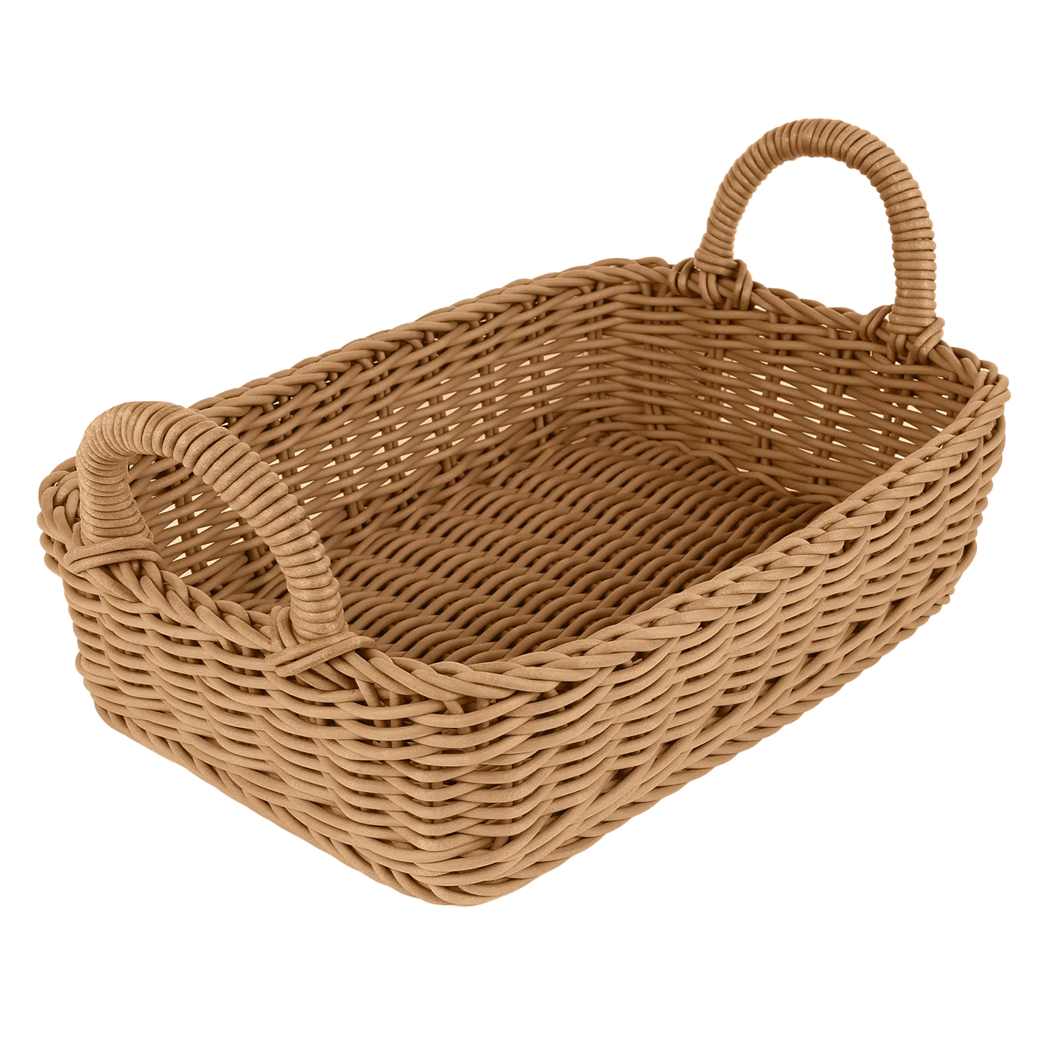 Элегантная корзина ручной работы из искусственного ротанга. Удобно переносить с помощью ручек. Устойчива к влаге, запахам. Выдерживает температуры от -20°С до +120°С. Долговечна и не плесневеет.