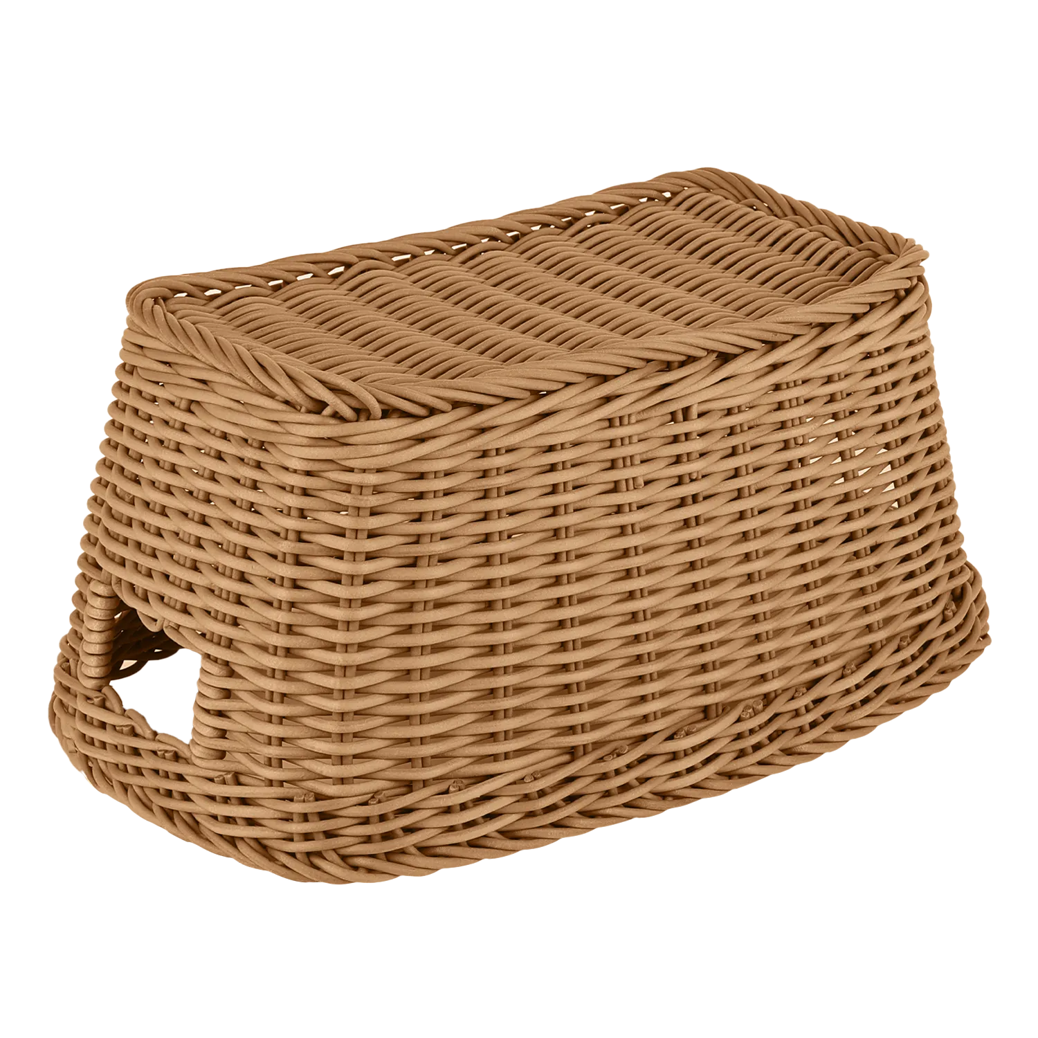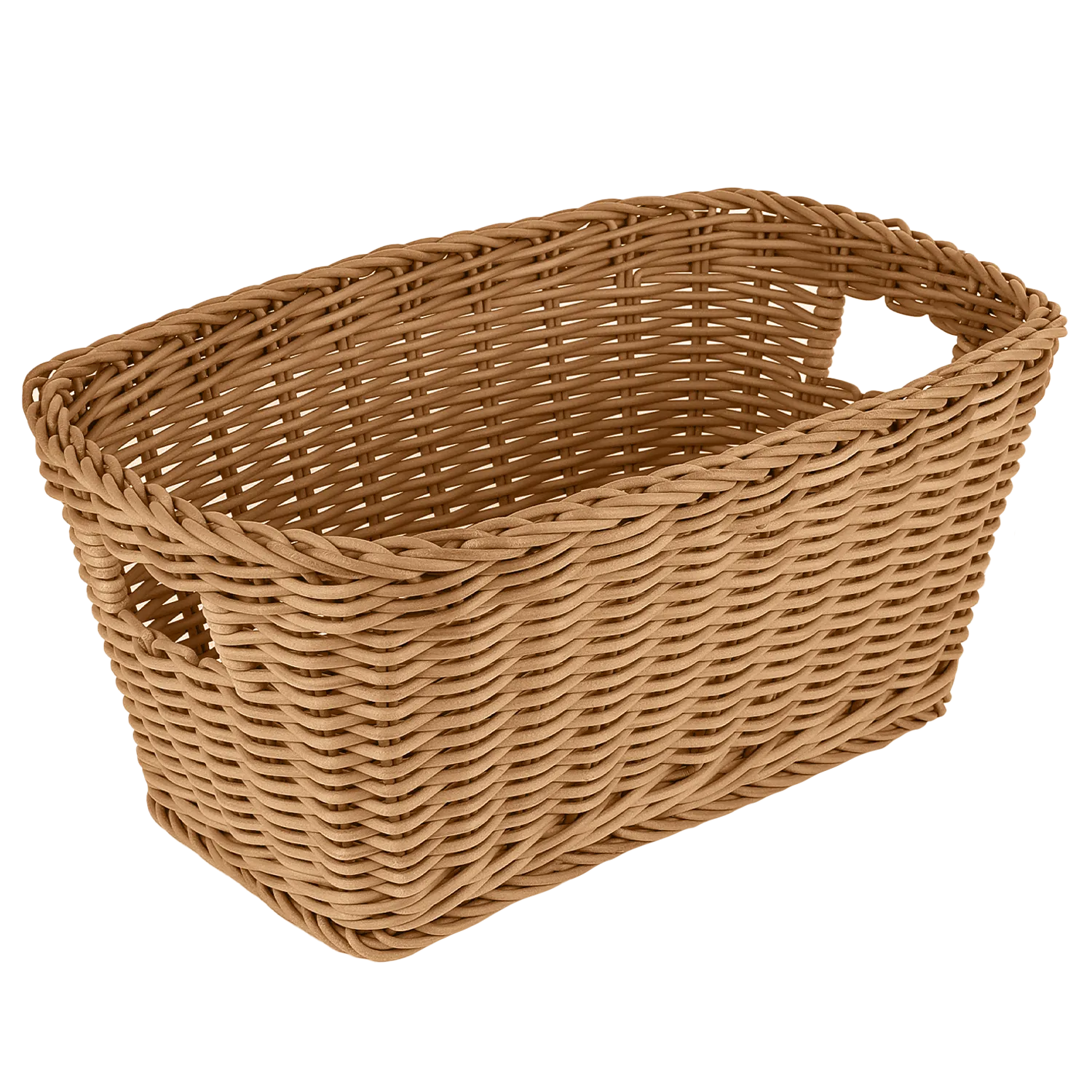 Элегантная корзина ручной работы из искусственного ротанга. Удобно переносить с помощью ручек. Устойчива к влаге, запахам. Выдерживает температуры от -20°С до +120°С. Долговечна и не плесневеет.