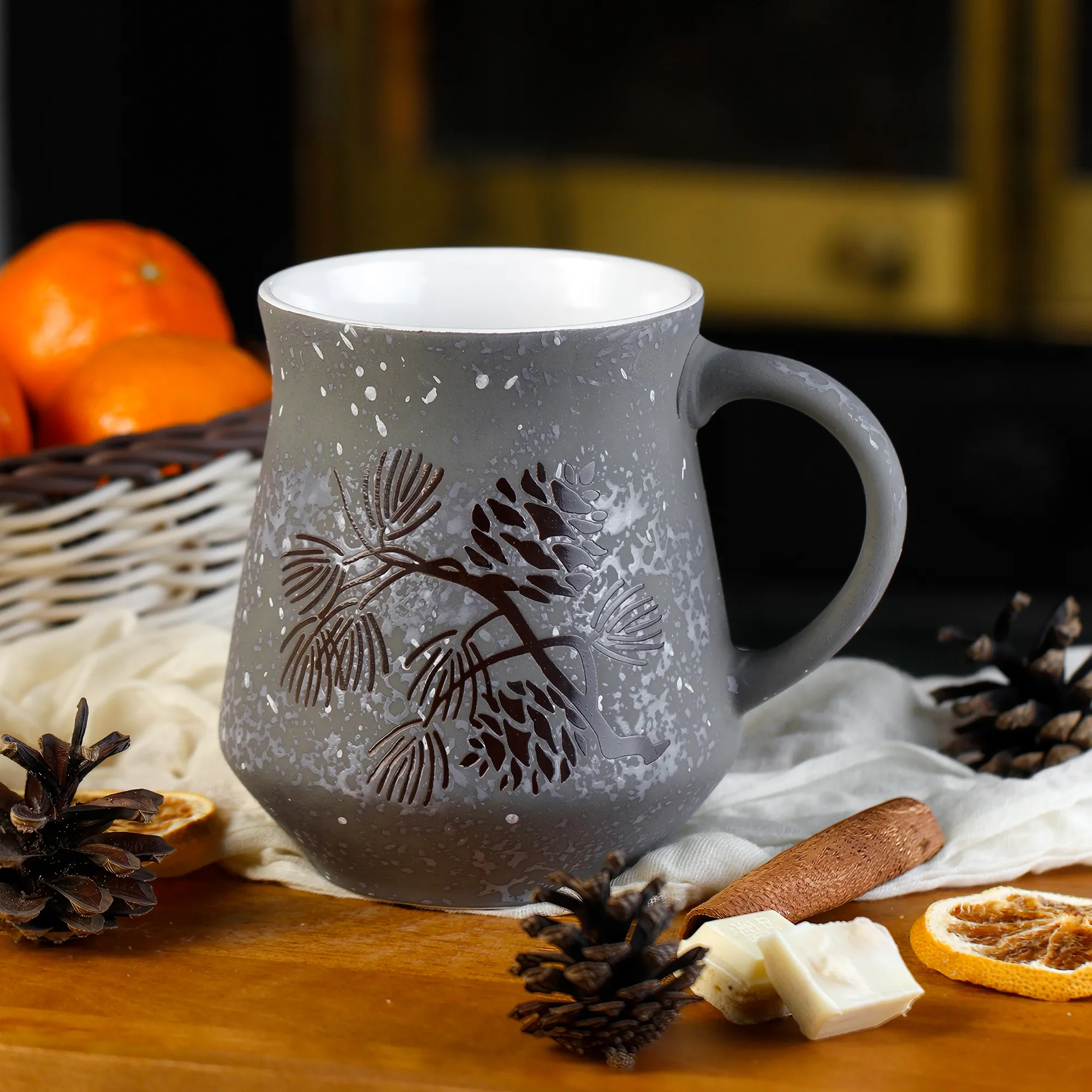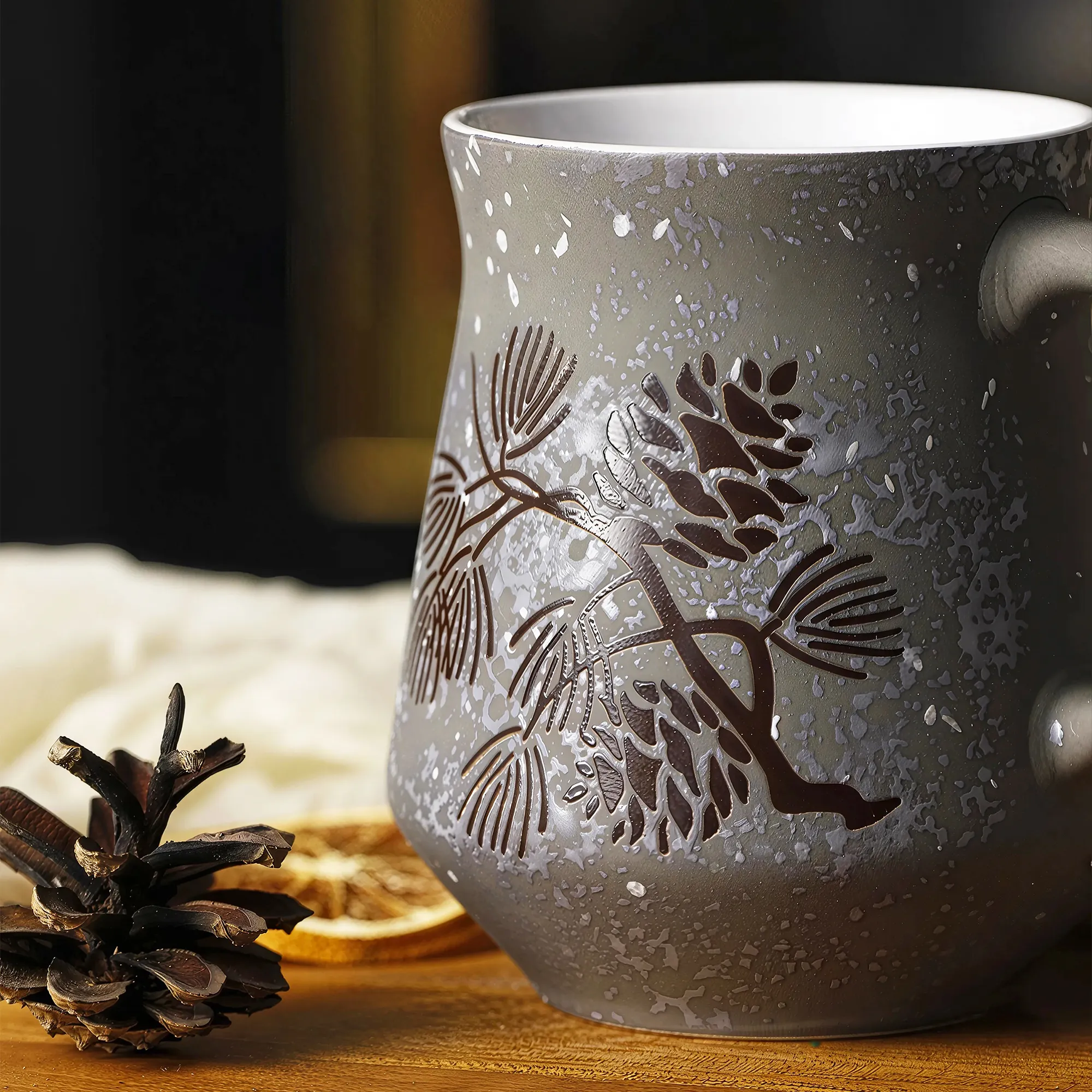 Рельефный атмосферный зимний рисунок. Прочный экологичный материал — каменная керамика. Особенная форма — кружка напоминает кувшин. Можно греть в микроволновой печи и мыть в посудомоечной машине.