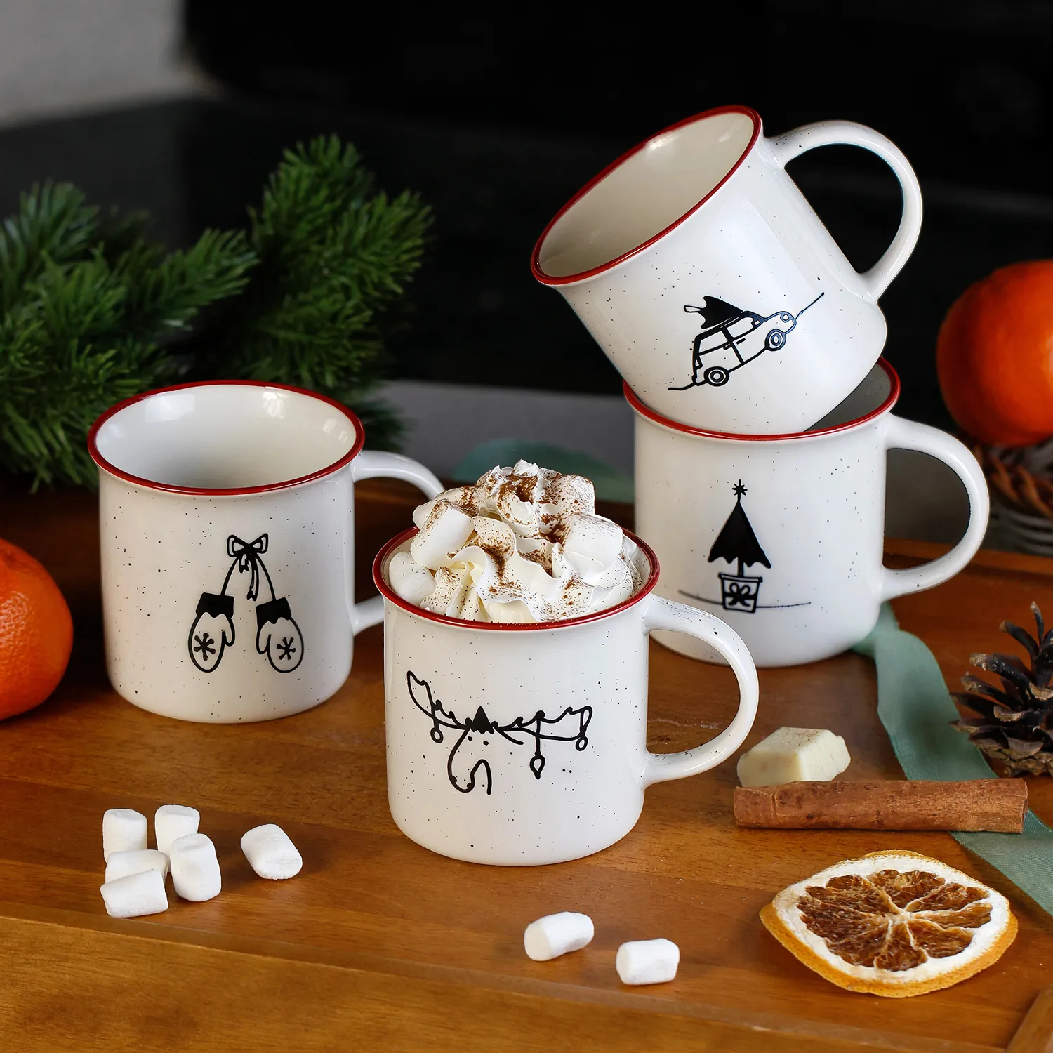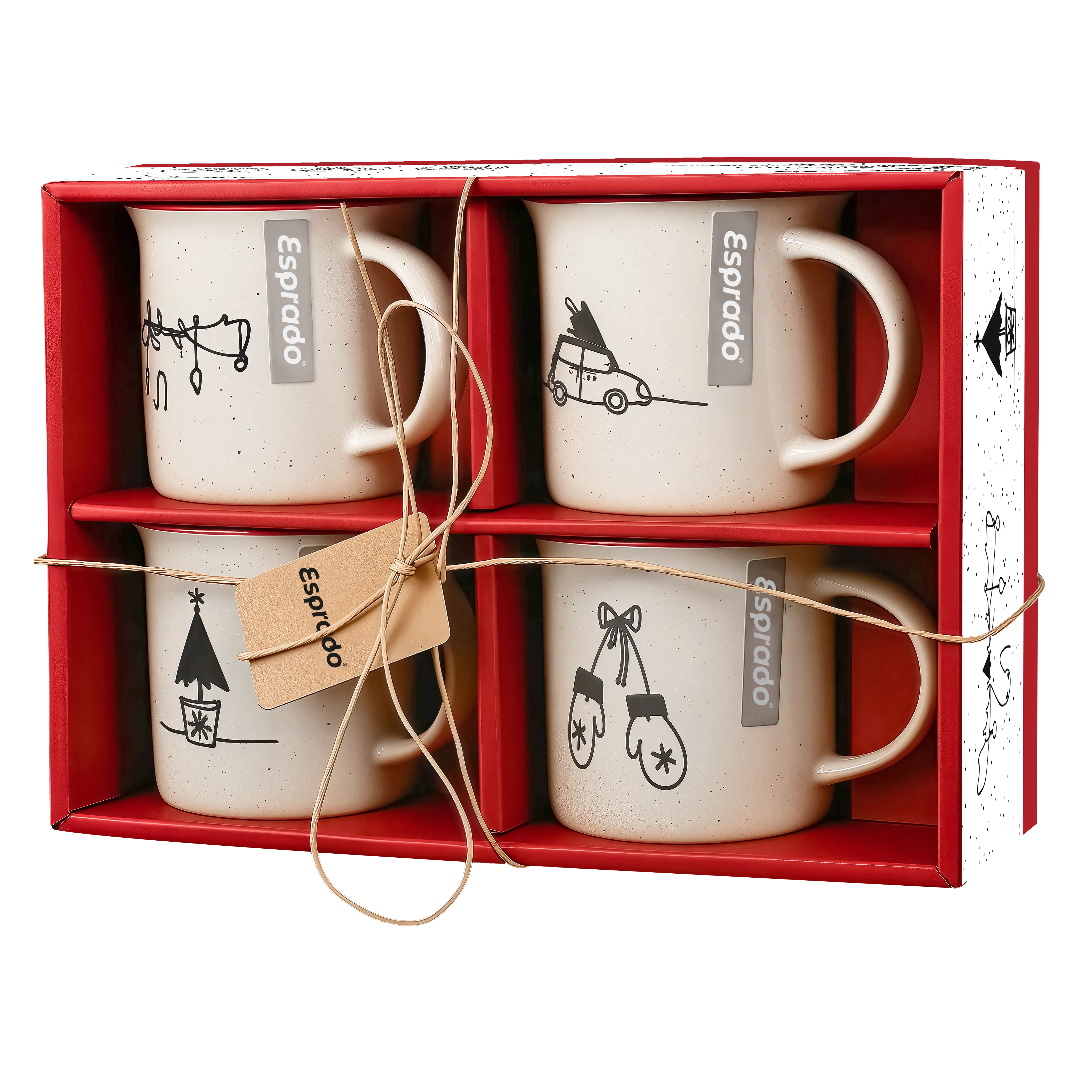 В наборе 4 кружки — станет чудесным подарком близким. На кружках разные рисунки — каждый найдет кружку по душе. Новогодняя подарочная упаковка. Можно мыть в посудомоечной машине и греть в микроволновой печи.