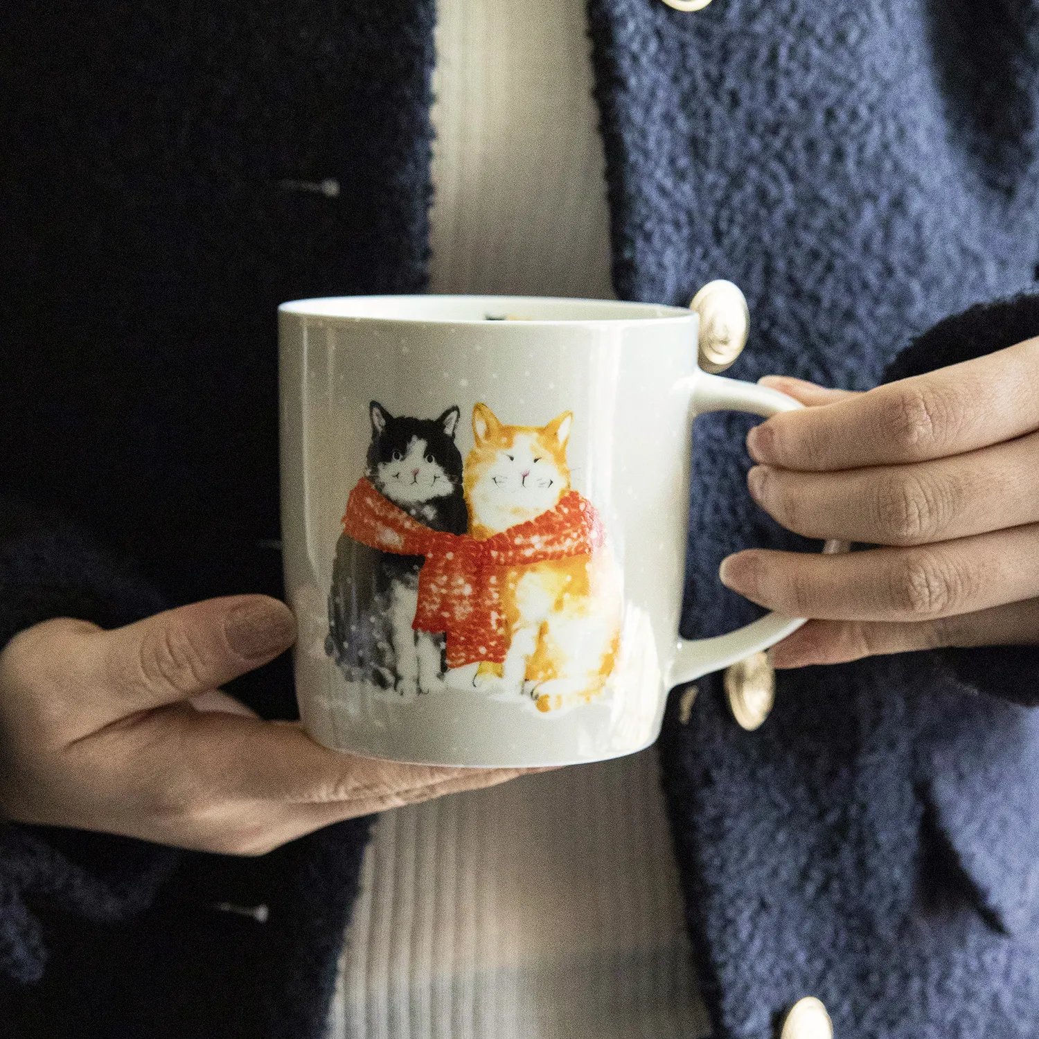 Фарфоровая кружка с забавными котиками в зимнем шарфе. Милый рисунок повторяется внутри кружки. Подарочная упаковка делает её идеальным подарком для любителей уюта. Подходит для микроволновой печи и посудомоечной машины.