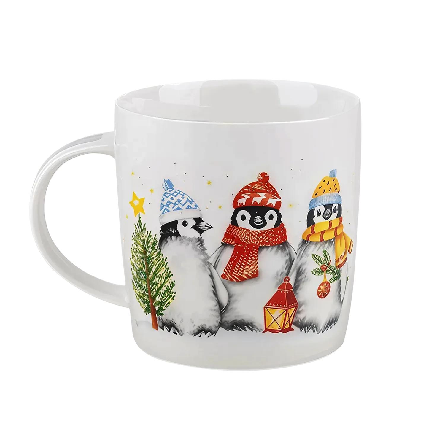 Очаровательная кружка с пингвинами в шарфах и шапках. Маленький рисунок повторяется на внутренней поверхности кружки. Подарочная упаковка делает её идеальным подарком. Подходит для микроволновой печи и посудомоечной машины.