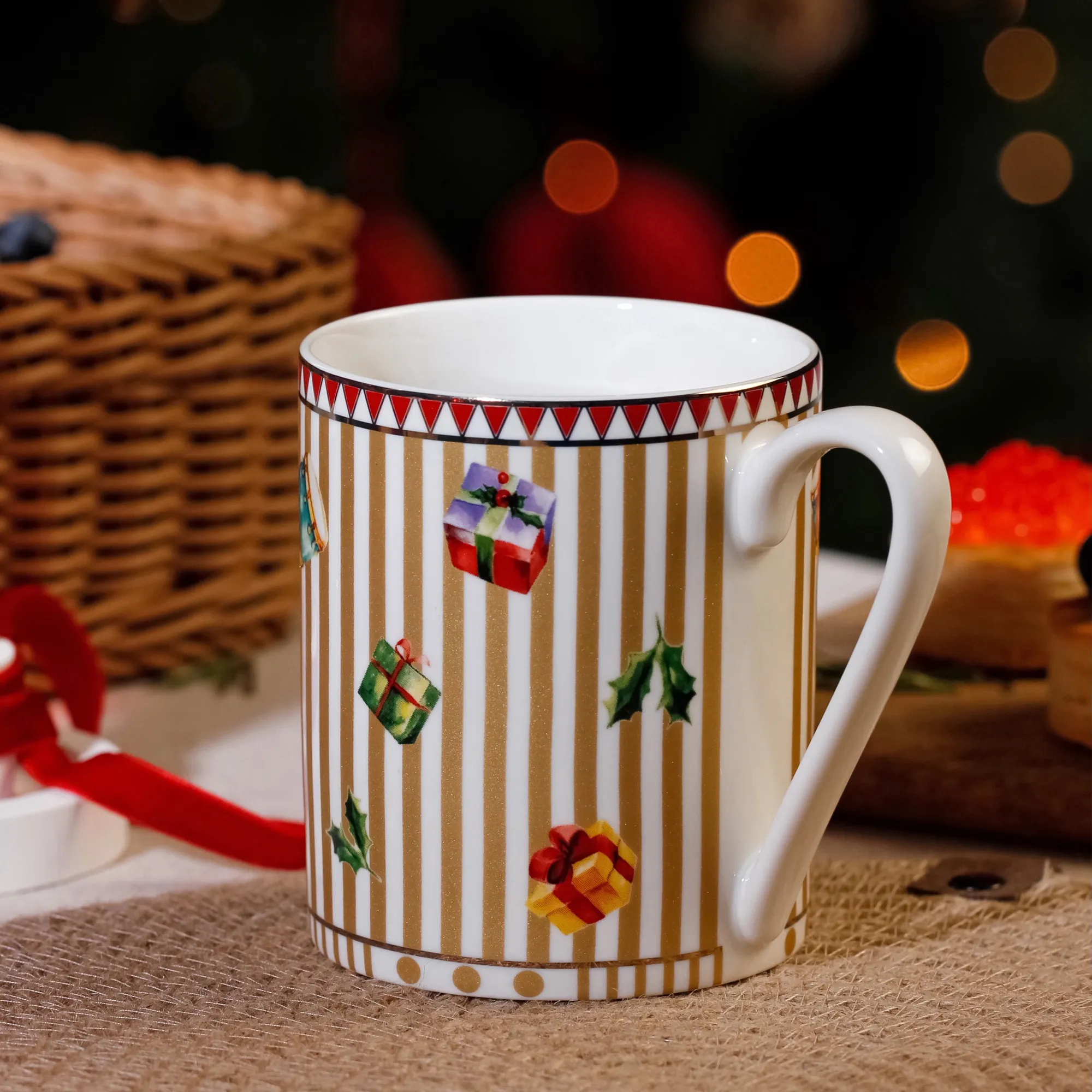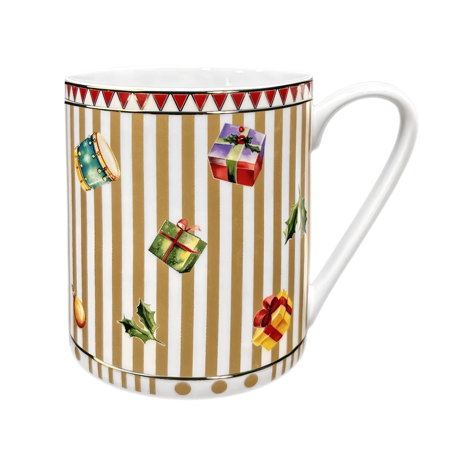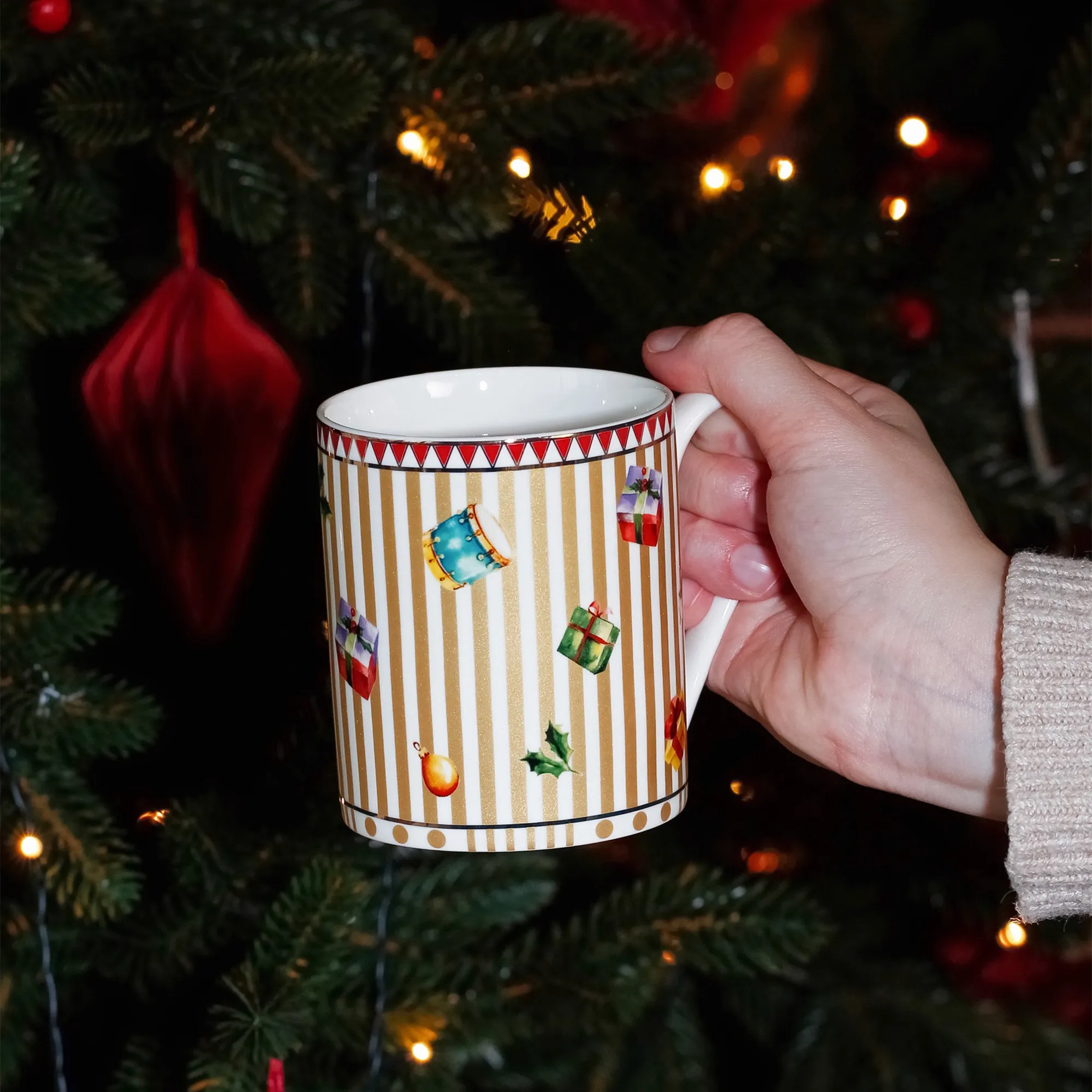 Тонкий, легкий фарфор классической формы. Сказочная новогодняя деколь с щелкунчиками, подарками и елочными игрушками сделает каждую трапезу особенной. Золотая отводка придаёт каждой детали праздничный блеск.