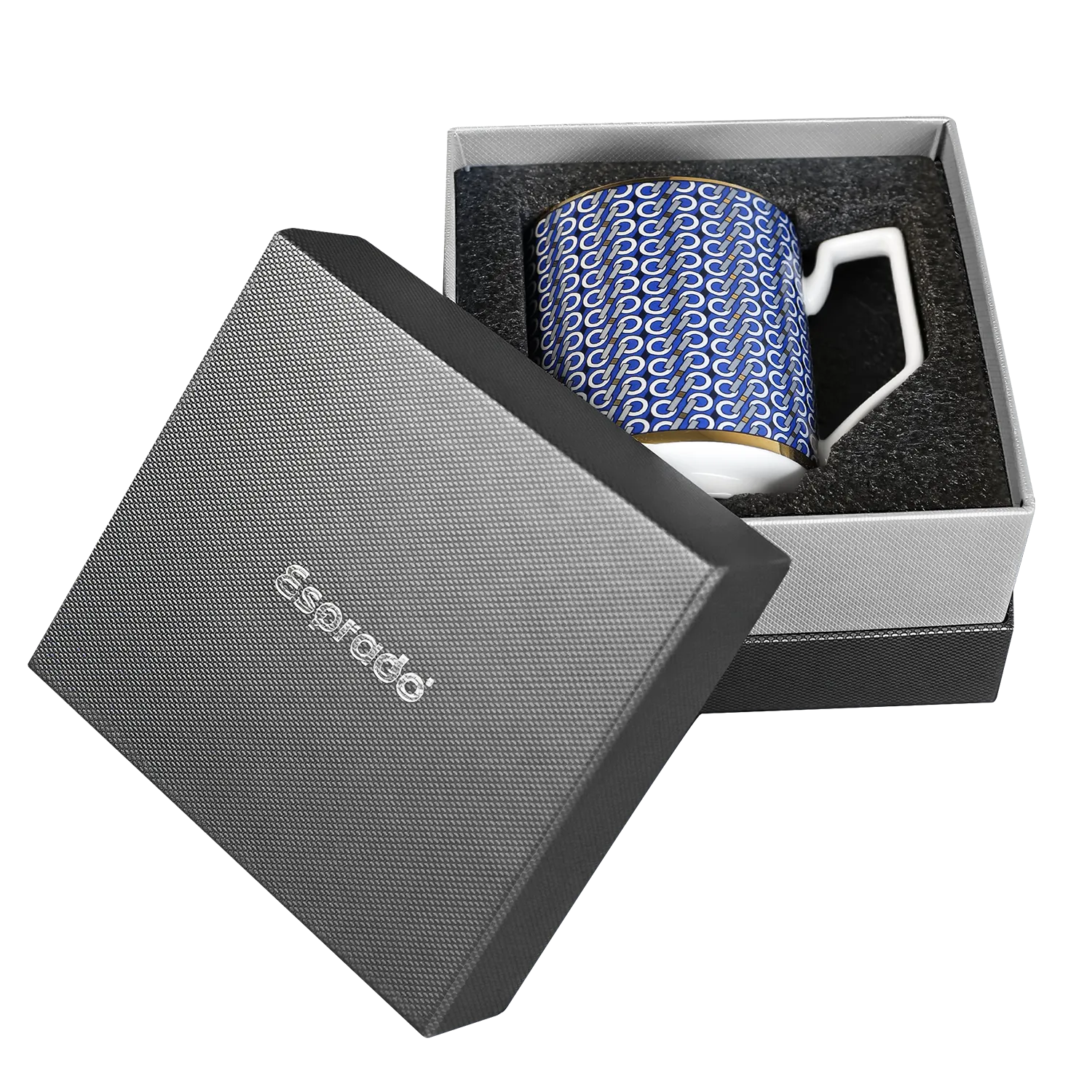 В запатентованном орнаменте зашифрованы элементы логотипа Esprado. Деликатные золотые детали придают кружке особенный блеск. Серая подарочная коробка делает кружку идеальным вариантом для запоминающегося подарка.