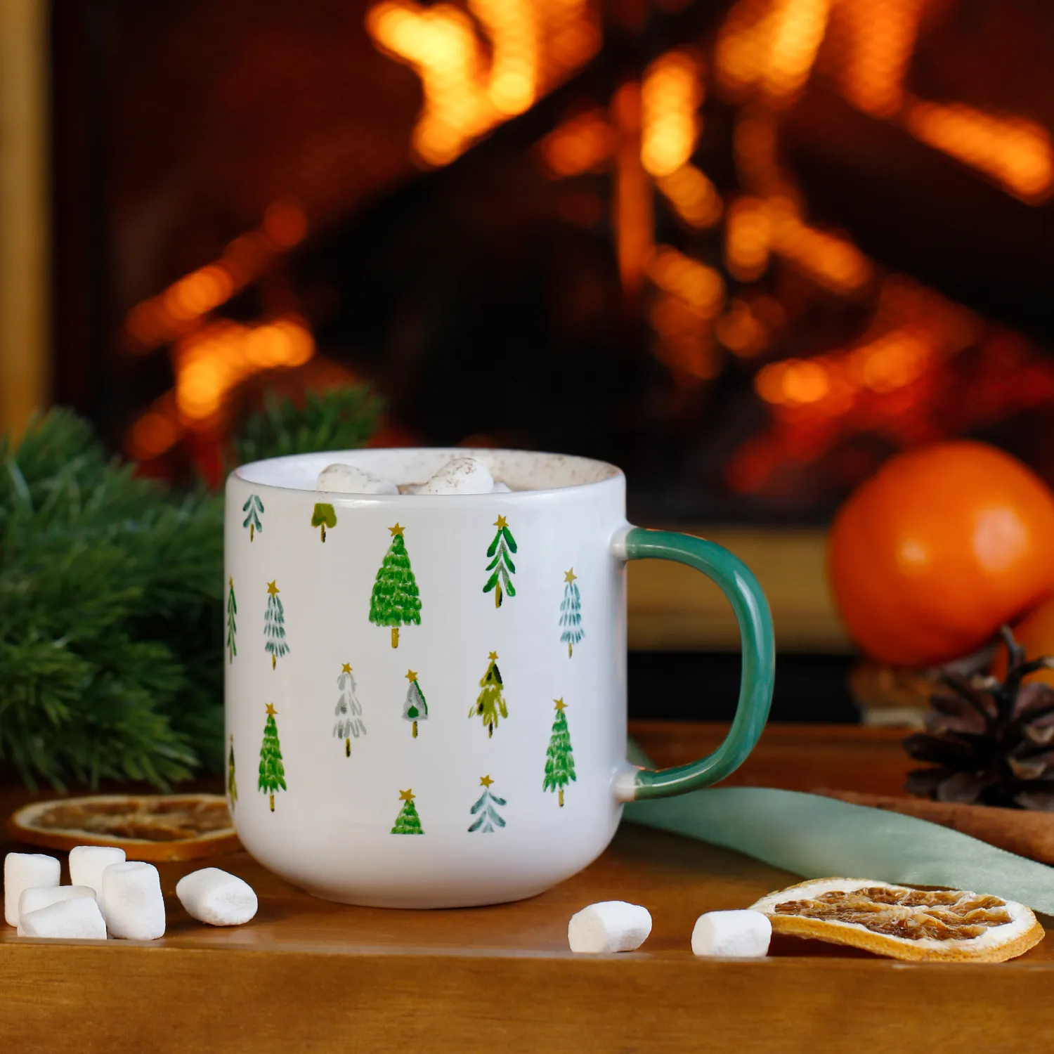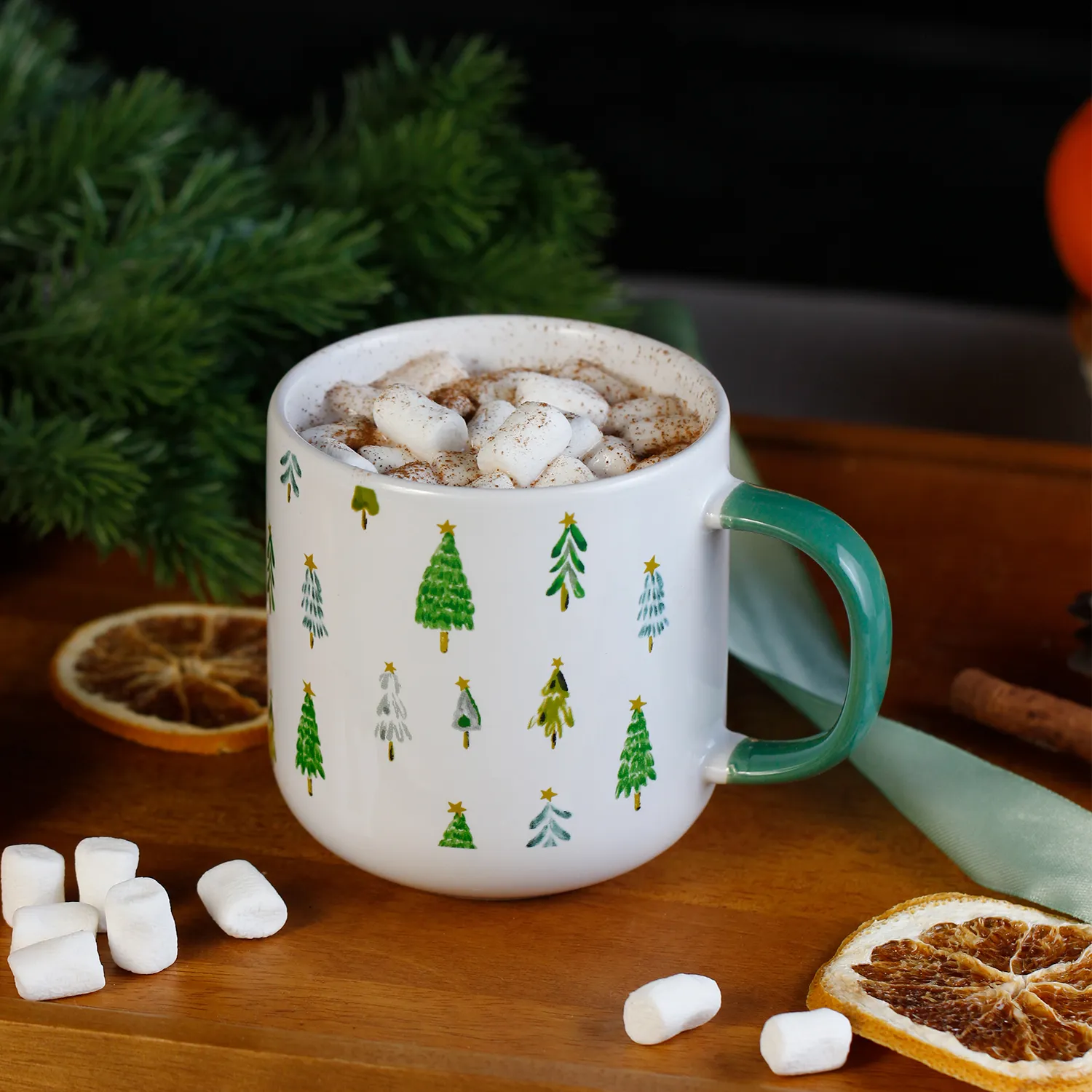Кружка из прочной каменной керамики с очаровательным рисунком новогодних ёлок. Насыщенные цвета и качественная детализация. Удобная ручка и объём. Можно греть в микроволновой печи и мыть в посудомоечной машине.