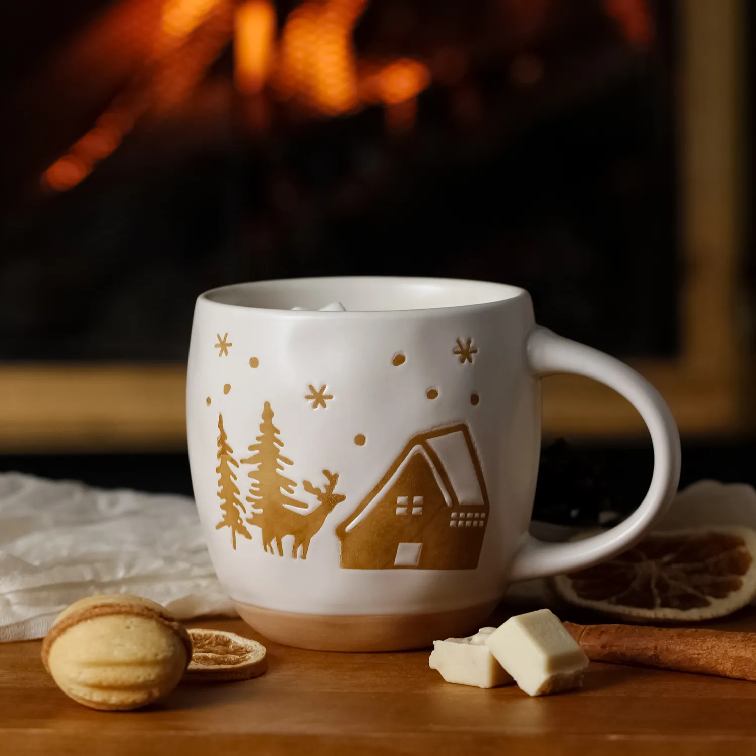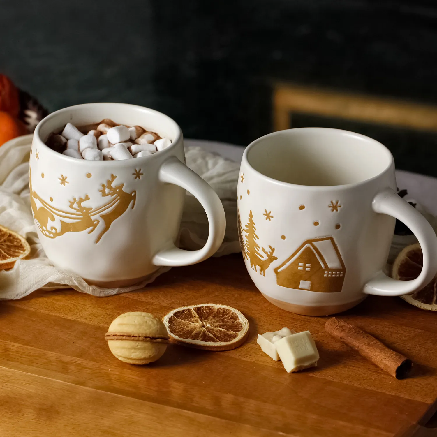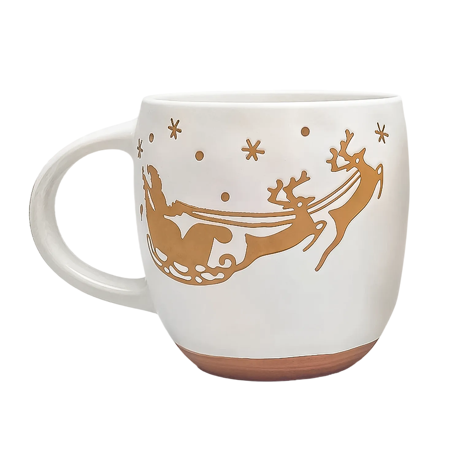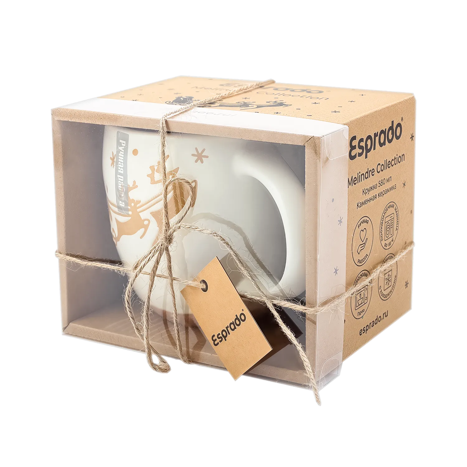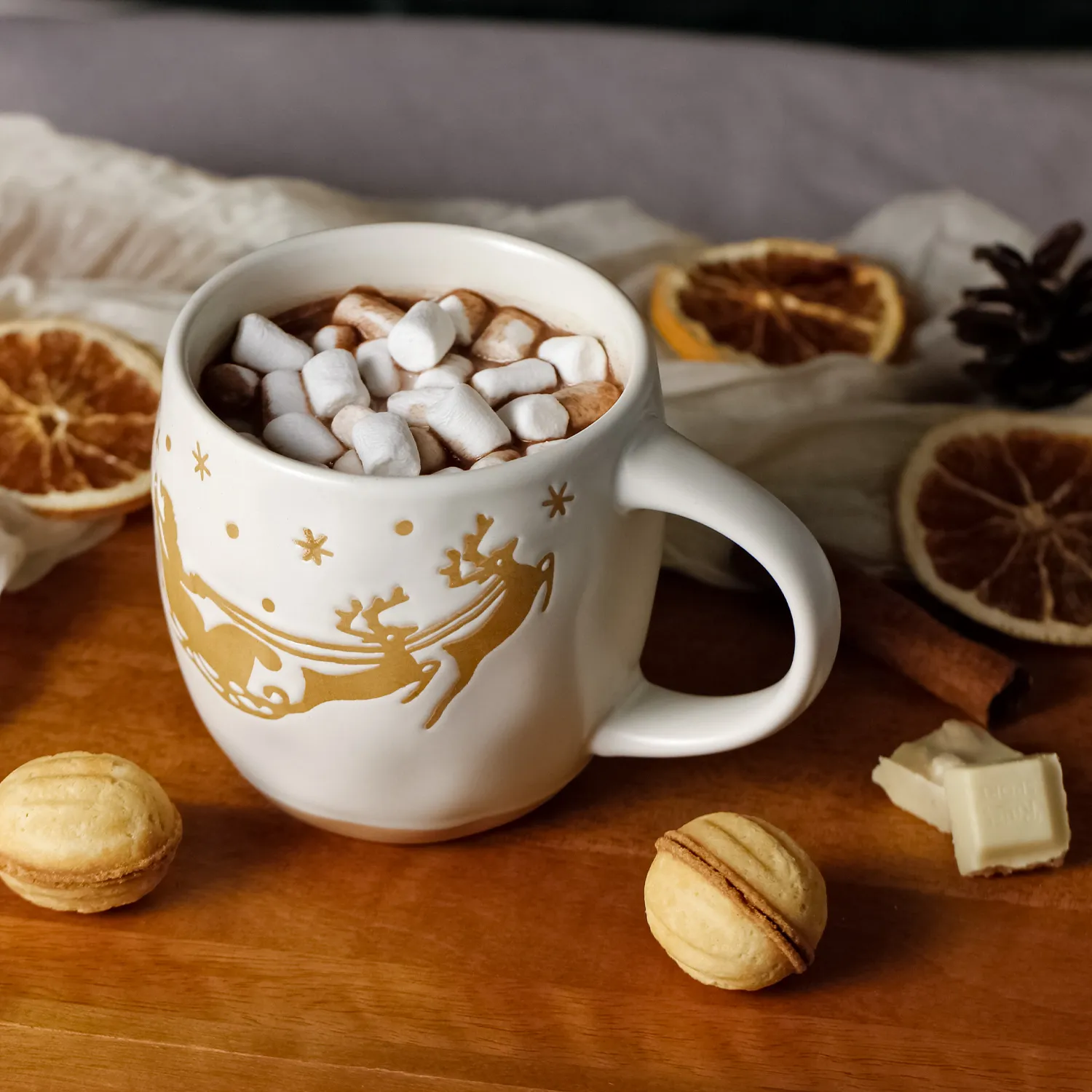 Милый дизайн бежевого цвета с рисунком Деда Мороза на санях. Ручка удобной формы. Большой объем. Сделано из прочной каменной керамики. Можно греть в микроволновой печи и мыть в посудомоечной машине.