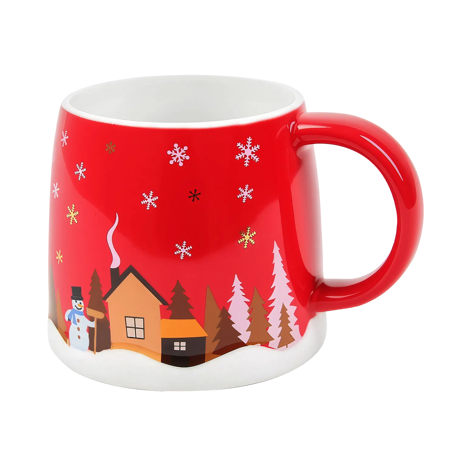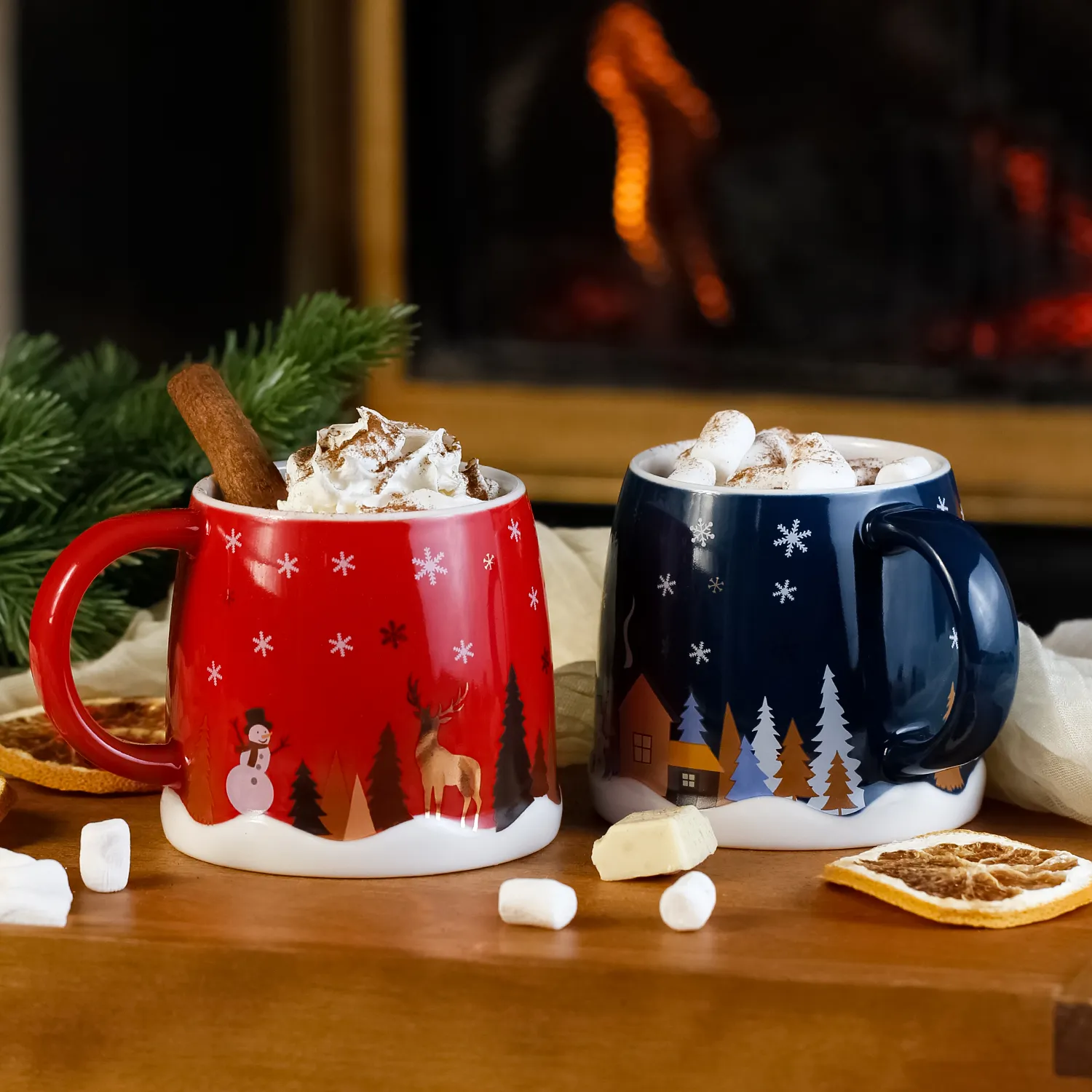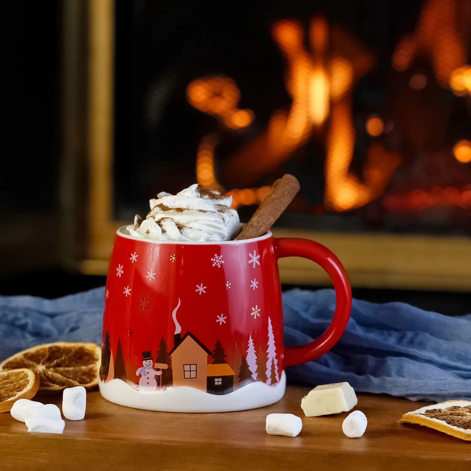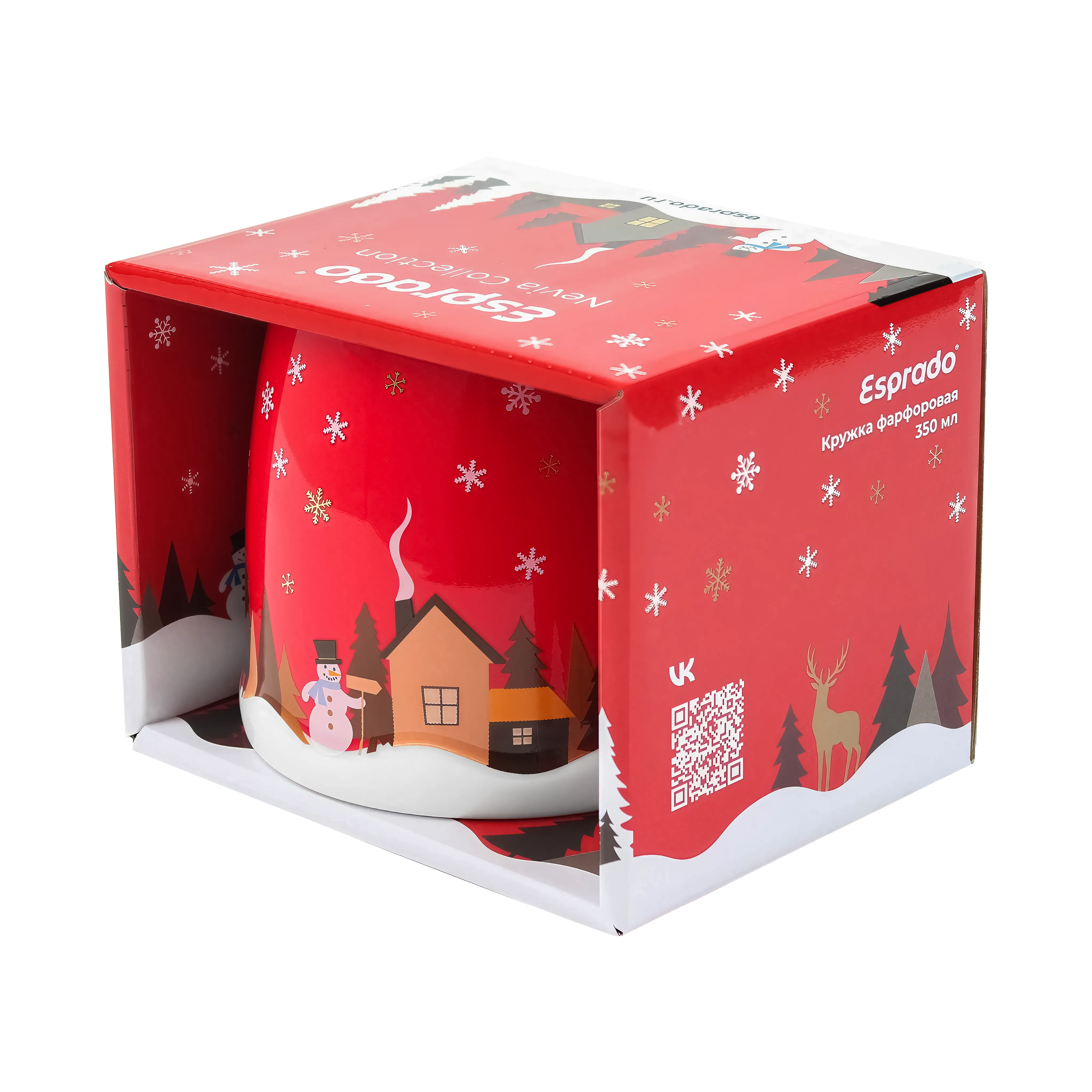 Елки, снеговик, домик, а также выделенные металликом снежинки и олень — настоящая зимняя сказка! Кружке добавляют очарования рельефные снежные сугробы. Яркая подарочная коробка — идеальный вариант для подарков!