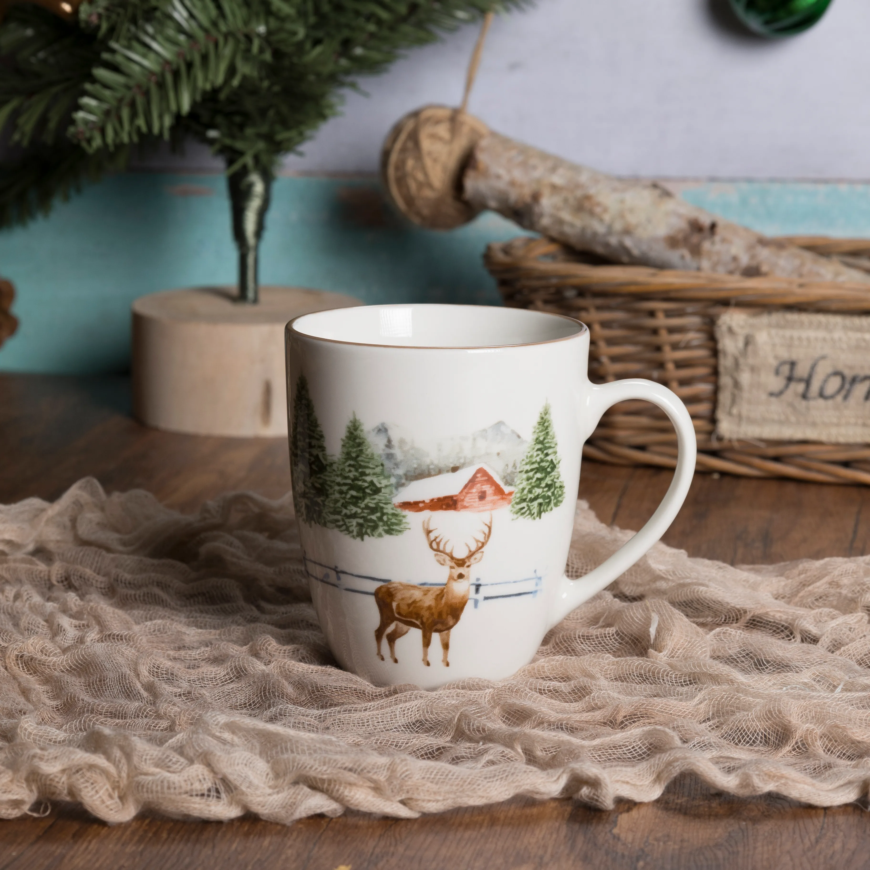 Орнамент с благородным оленем и сказочным зимним пейзажем украшает кружку. Коричневая отводка аккуратно выделяет изделие. Подойдет как для повседневной, так и для праздничной сервировки. Можно мыть в посудомоечной машине и греть в микроволновой печи.