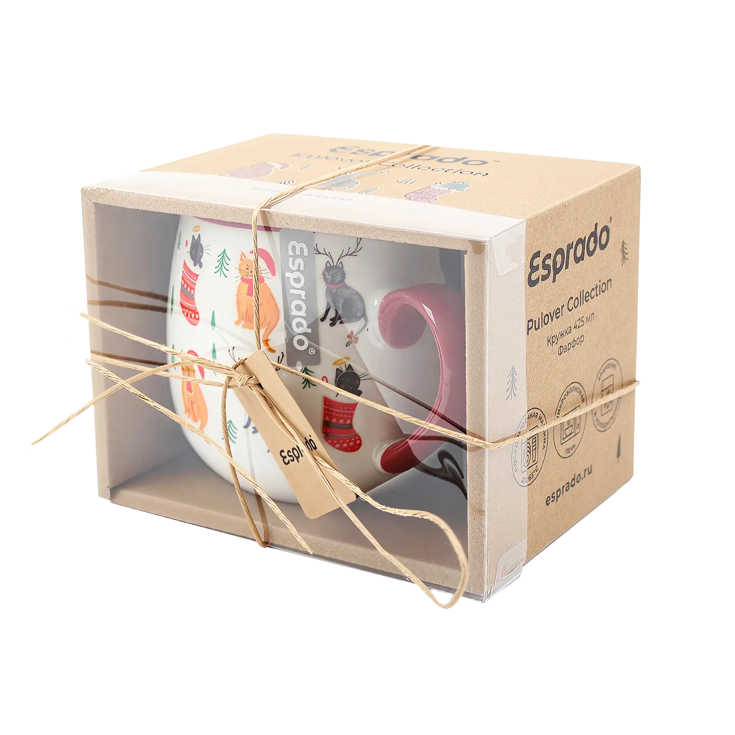 Очаровательный рисунок кошек с праздничными аксессуарами. Необычная округлая форма кружки. Красная отводка дополняет ручку такого же цвета и деколь. Можно мыть в посудомоечной машине и греть в микроволновой машине.