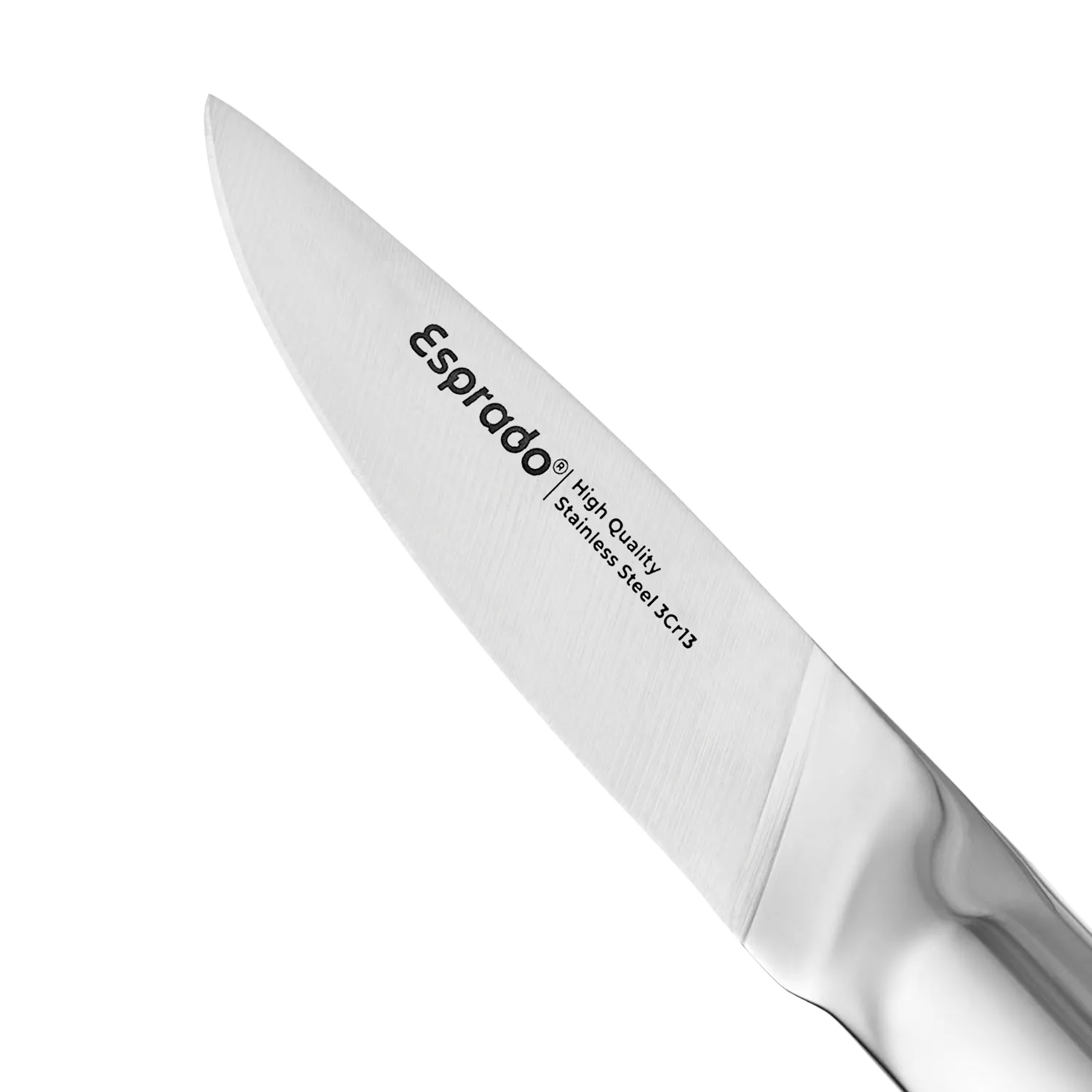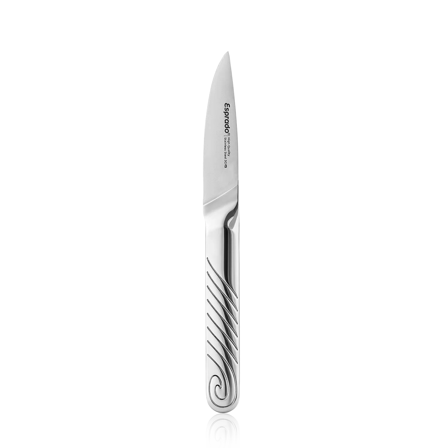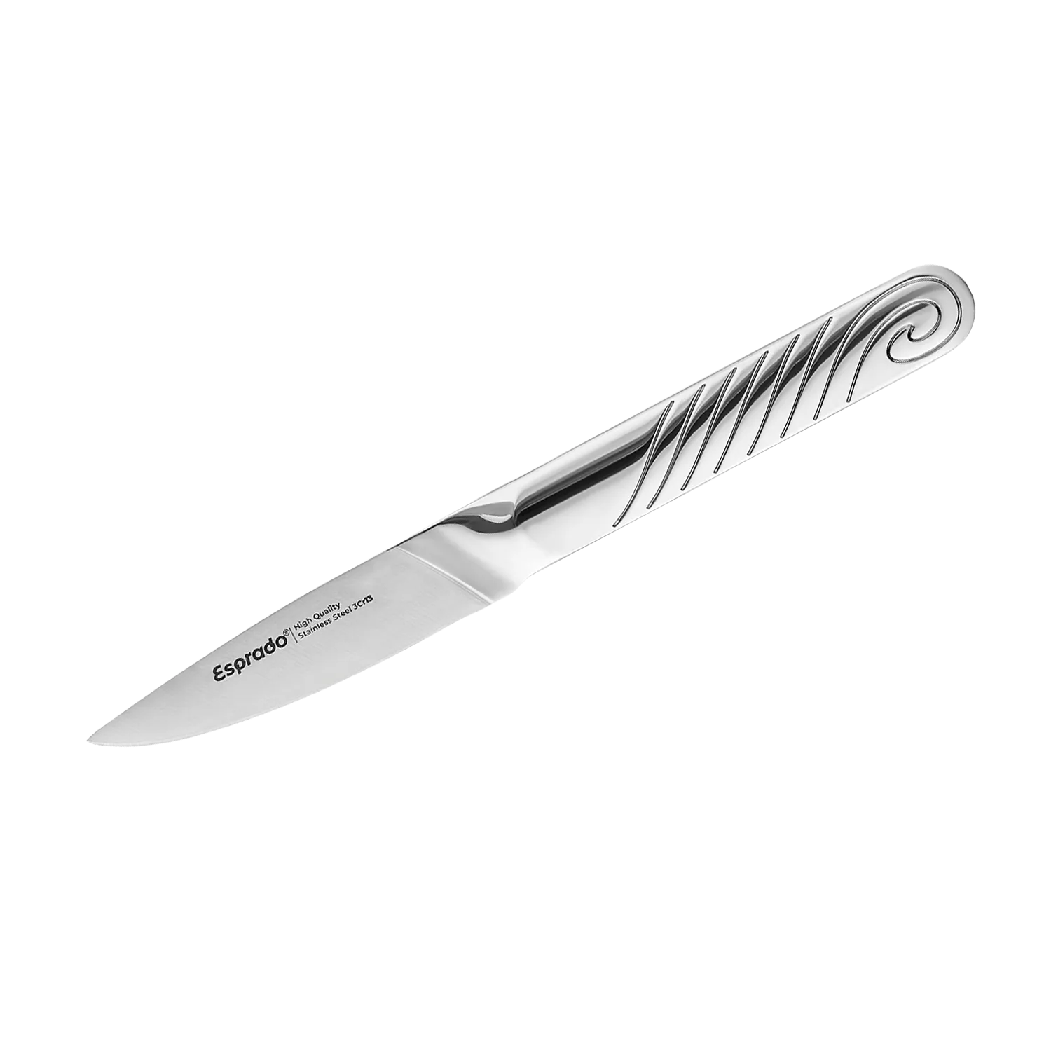 Острое лезвие из прочной высококачественной стали не царапается и долго сохраняет безупречный внешний вид. Нескользящая рукоятка рельефной формы гарантирует удобство хвата и комфорт использования ножа. Легко заточить в домашних условиях.