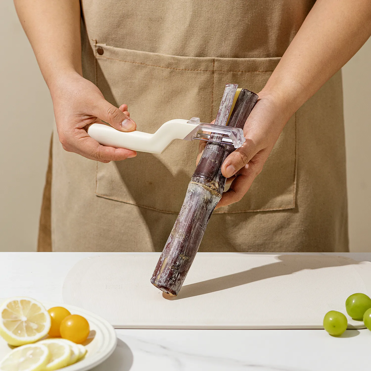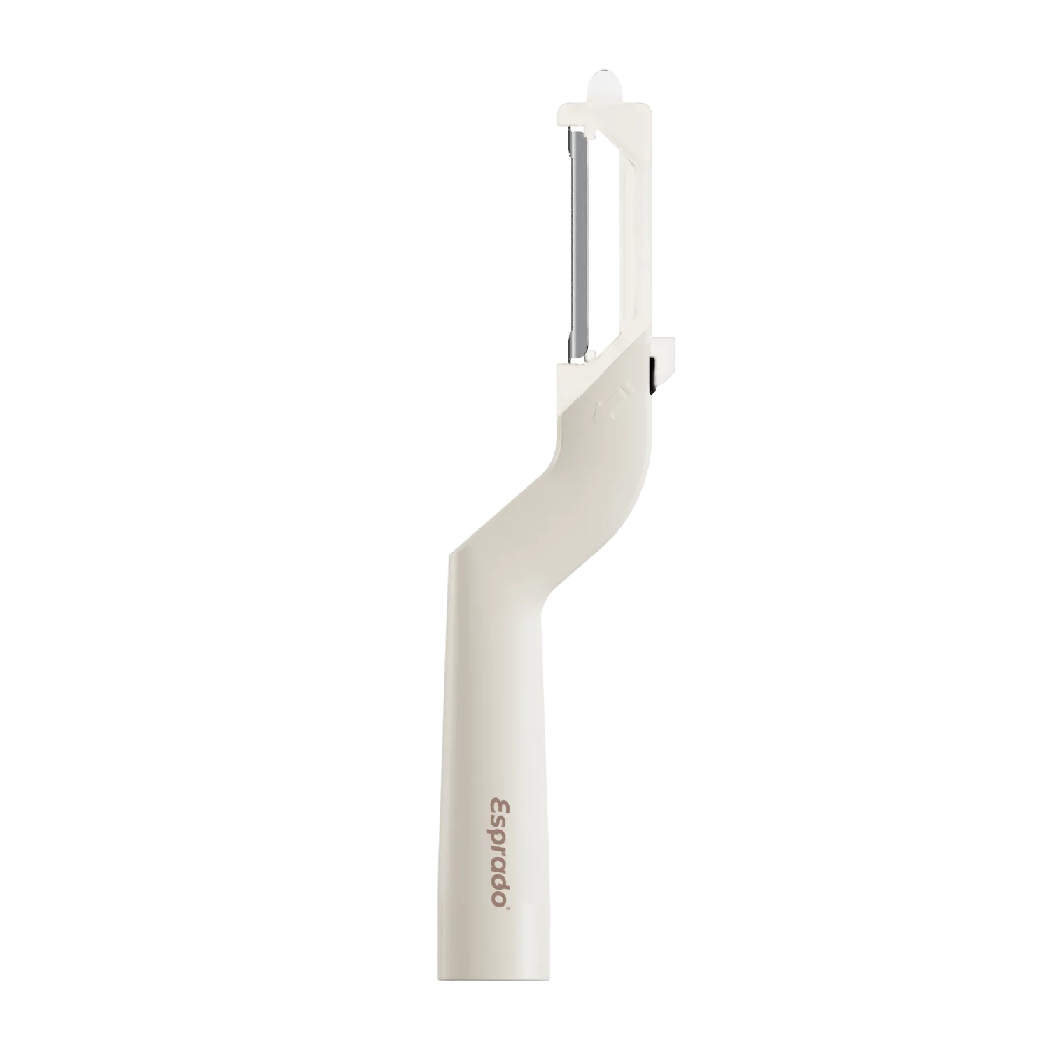 Лезвие овощечистки можно повернуть на 90 градусов — удобно чистить продукты. Есть удалитель «глазков». Спокойный цвет слоновой кости подойдет под любую кухню.