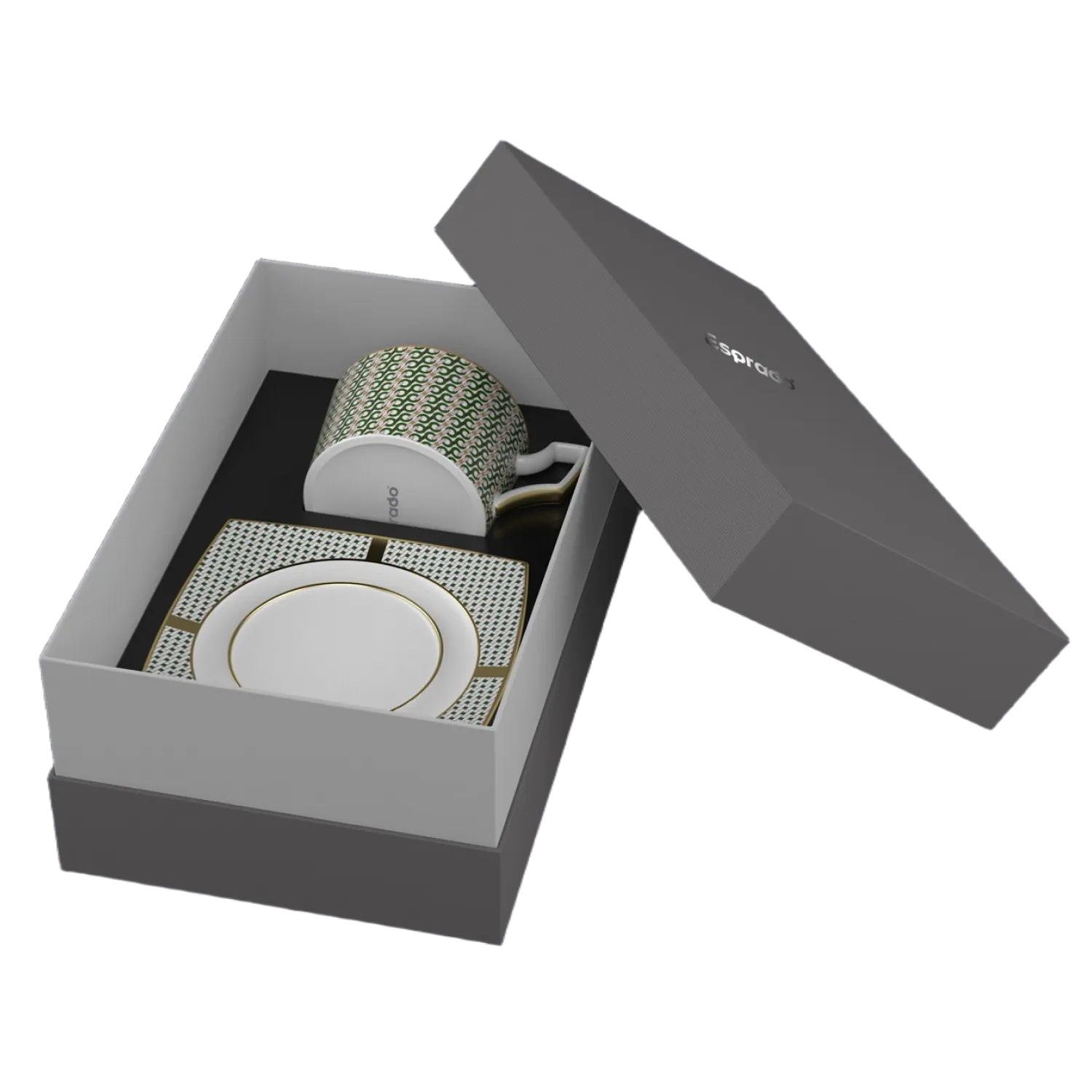 Чайная пара с запатентованным дизайном, напоминающим переплетения цепей, преобразит ваше чаепитие. Благородный орнамент подчеркивается сиянием золотых деталей. Стильная серая подарочная коробка делает ее идеальным выбором для небольшого, но заметного подарка.