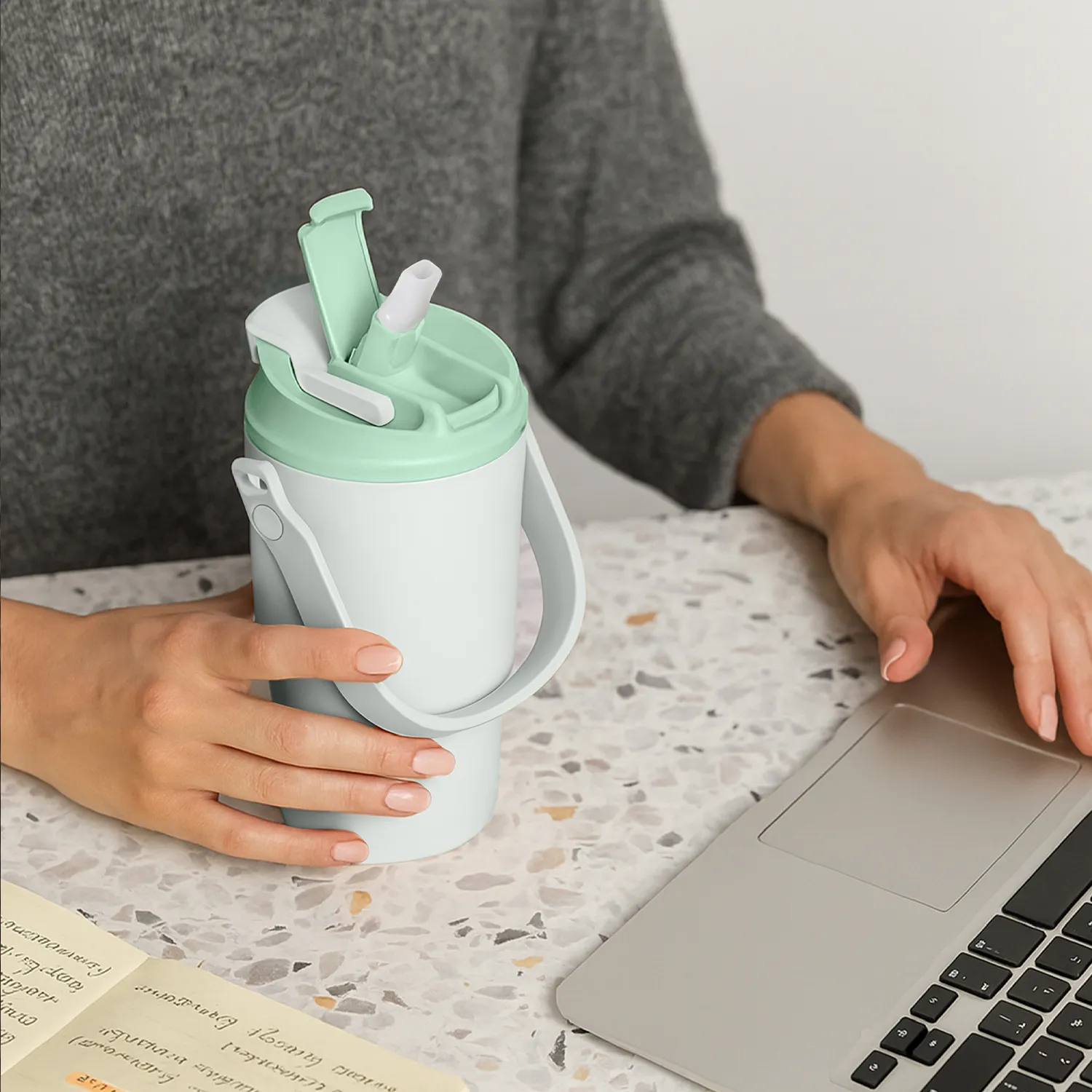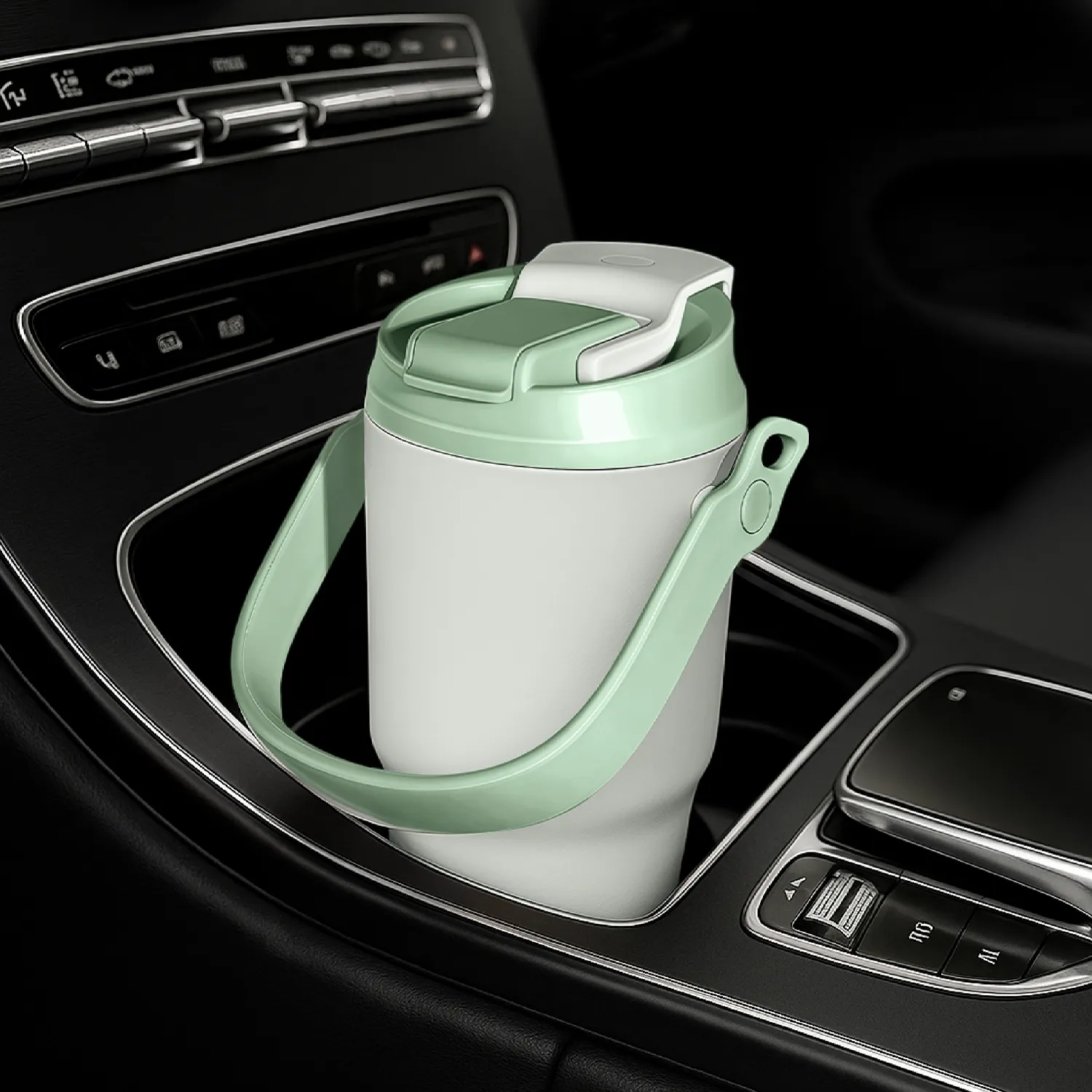 Сохраняет тепло в течение 6 часов, холод — до 12 часов, а со льдом — до 30 часов. Подходит для автомобильного подстаканника. Можно прикрепить декоративный ремень. Доступны два способа питья: через соломинку или напрямую. Герметичная конструкция с вакуумной изоляцией. Колба из нержавеющей стали марки 304. Силиконовое основание.