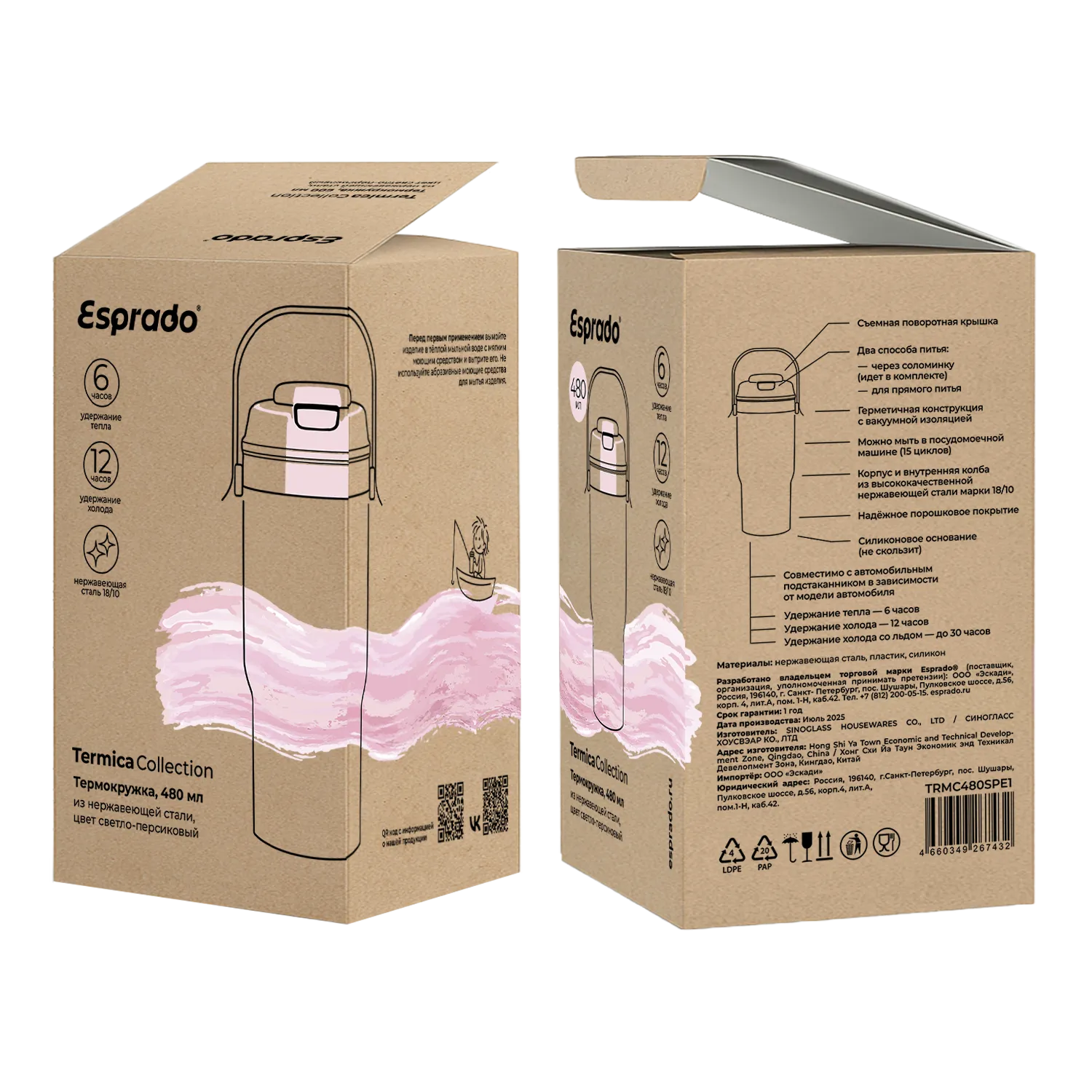 Сохраняет тепло в течение 6 часов, холод — до 12 часов, а со льдом — до 30 часов. Подходит для автомобильного подстаканника. Можно прикрепить декоративный ремень. Доступны два способа питья: через соломинку или напрямую. Герметичная конструкция с вакуумной изоляцией. Корпус и колба из нержавеющей стали марки 18/10. Силиконовое основание.